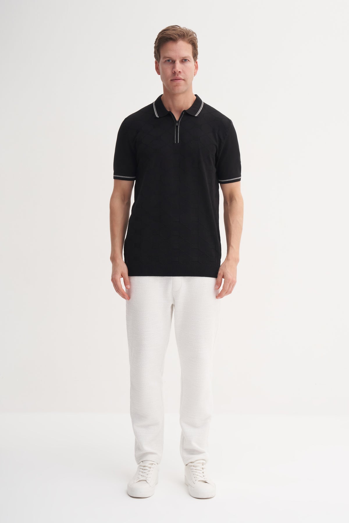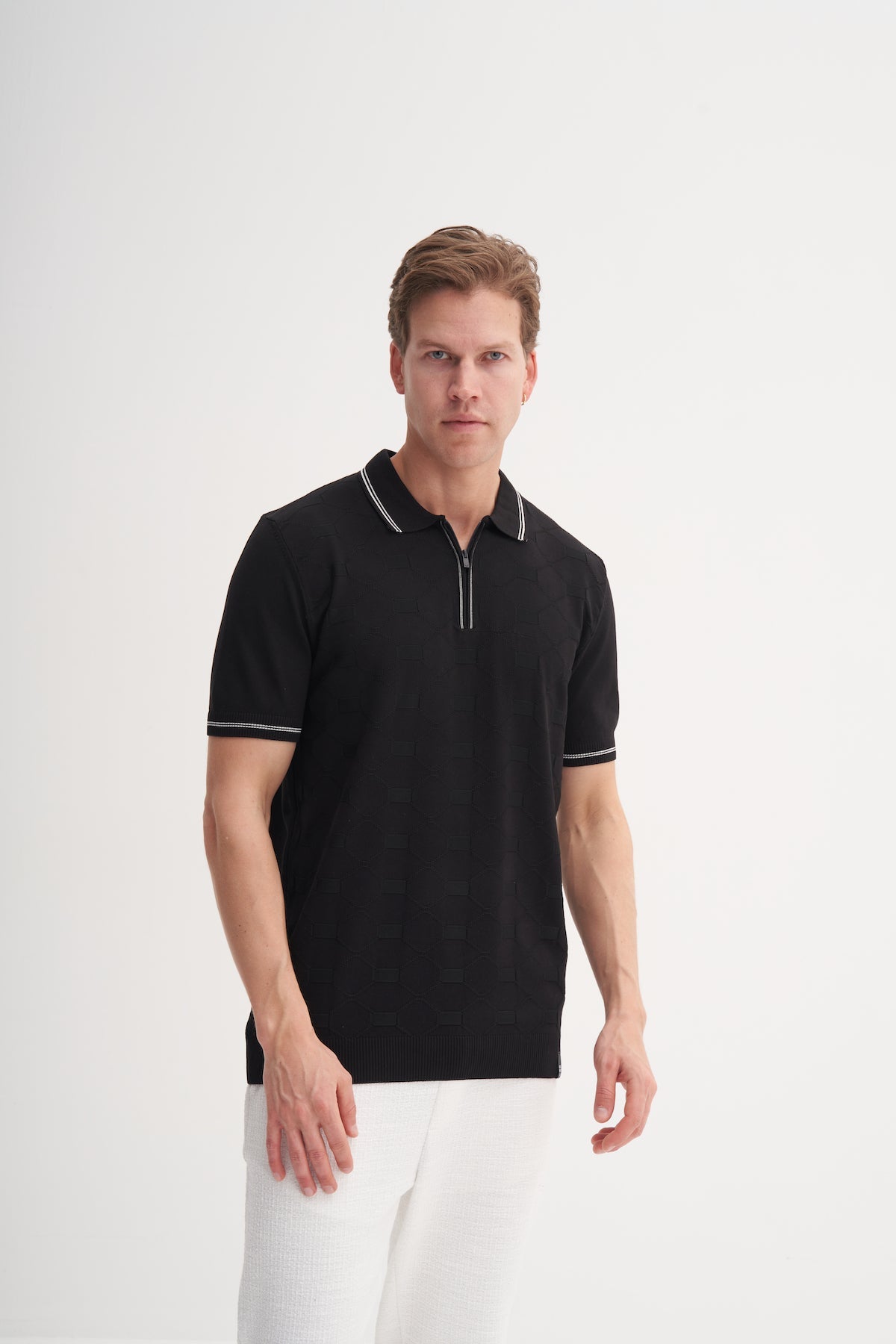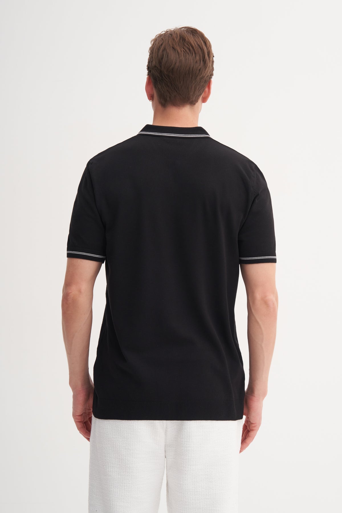Polo Yaka Regular Fit Fermuarlı Triko Tişört 3031