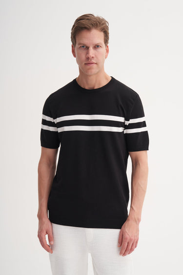 Bisiklet Yaka Regular Fit Çizgi Desenli Triko Tişört 3036