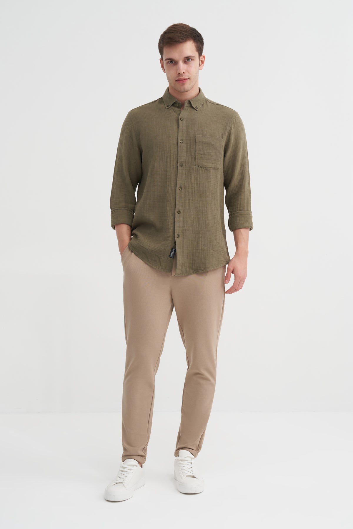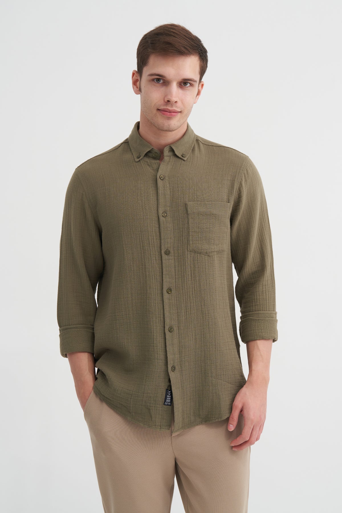 Regular Fit Pamuklu Müslin Uzun Kol Gömlek 2024