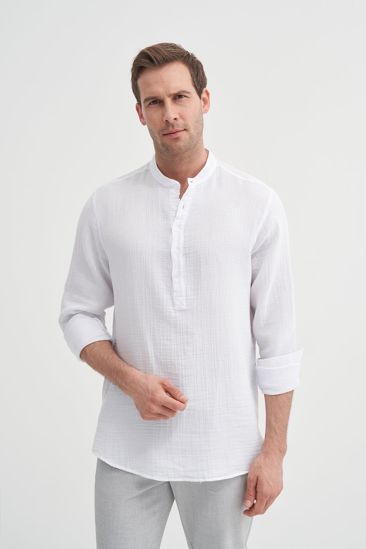Regular Fit Pamuklu Müslin Uzun Kol Gömlek 2025