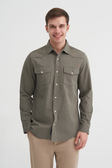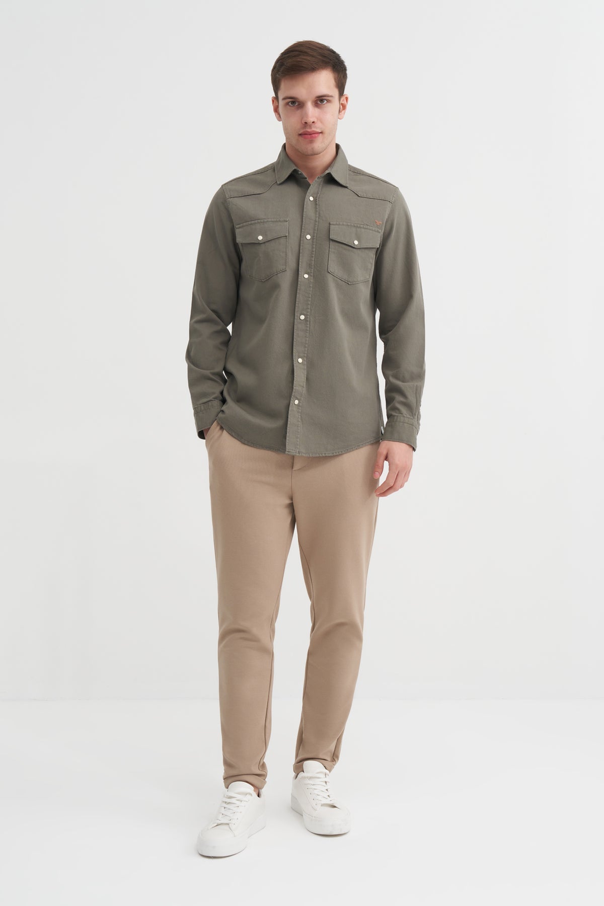 Regular Fit Pamuklu Cep Detaylı Uzun Kol Gömlek 2046 - Cazador