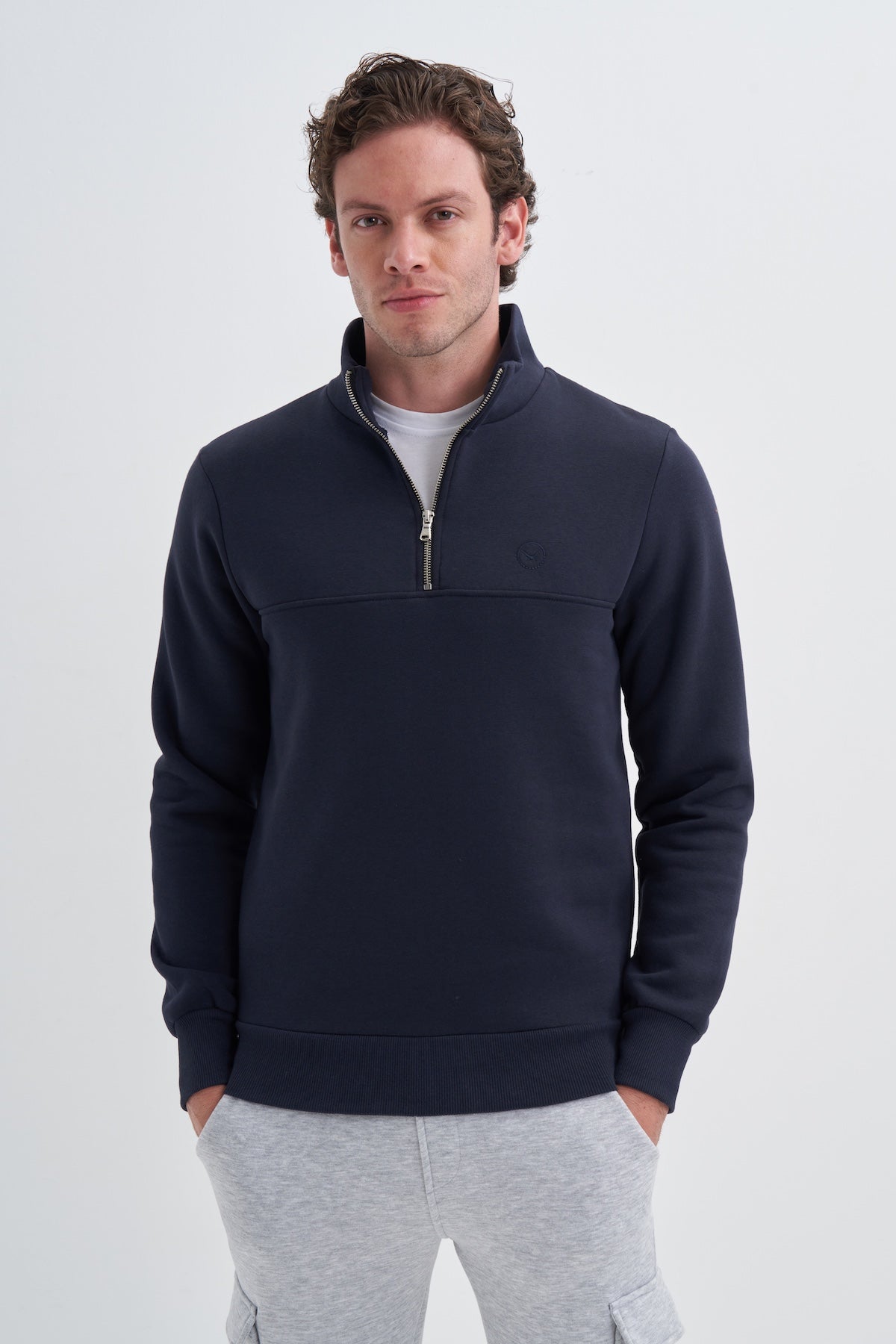 Slim Fit Dik Yaka İçi Yumuşak Şardonlu 3 İplik Sweatshirt - 56180 - Cazador