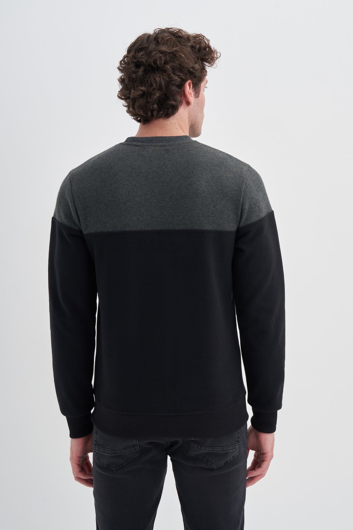 Slim Fit Patchwork and Plain Fabric Combined Selanik Sweatshirt-56220