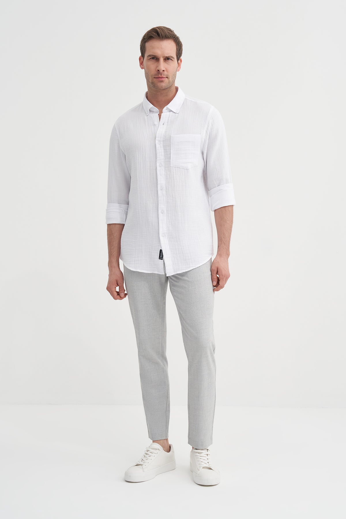 Regular Fit Pamuklu Müslin Uzun Kol Gömlek 2024 - Cazador