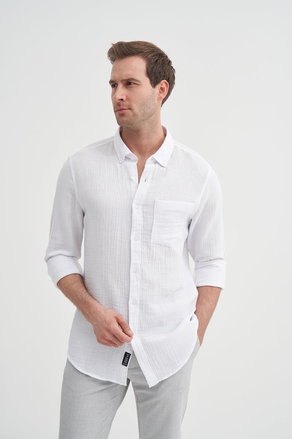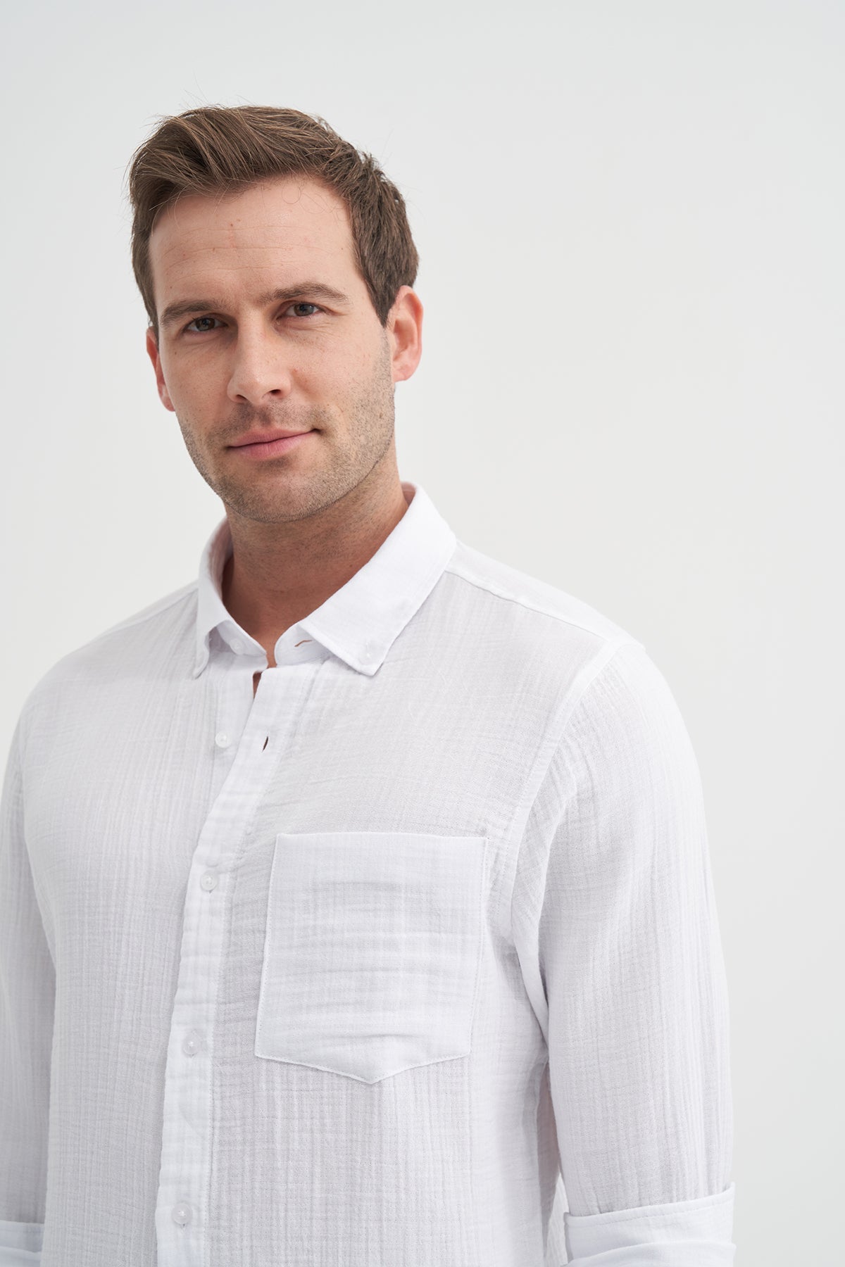 Regular Fit Cotton Muslin Long Sleeve Shirt 2024