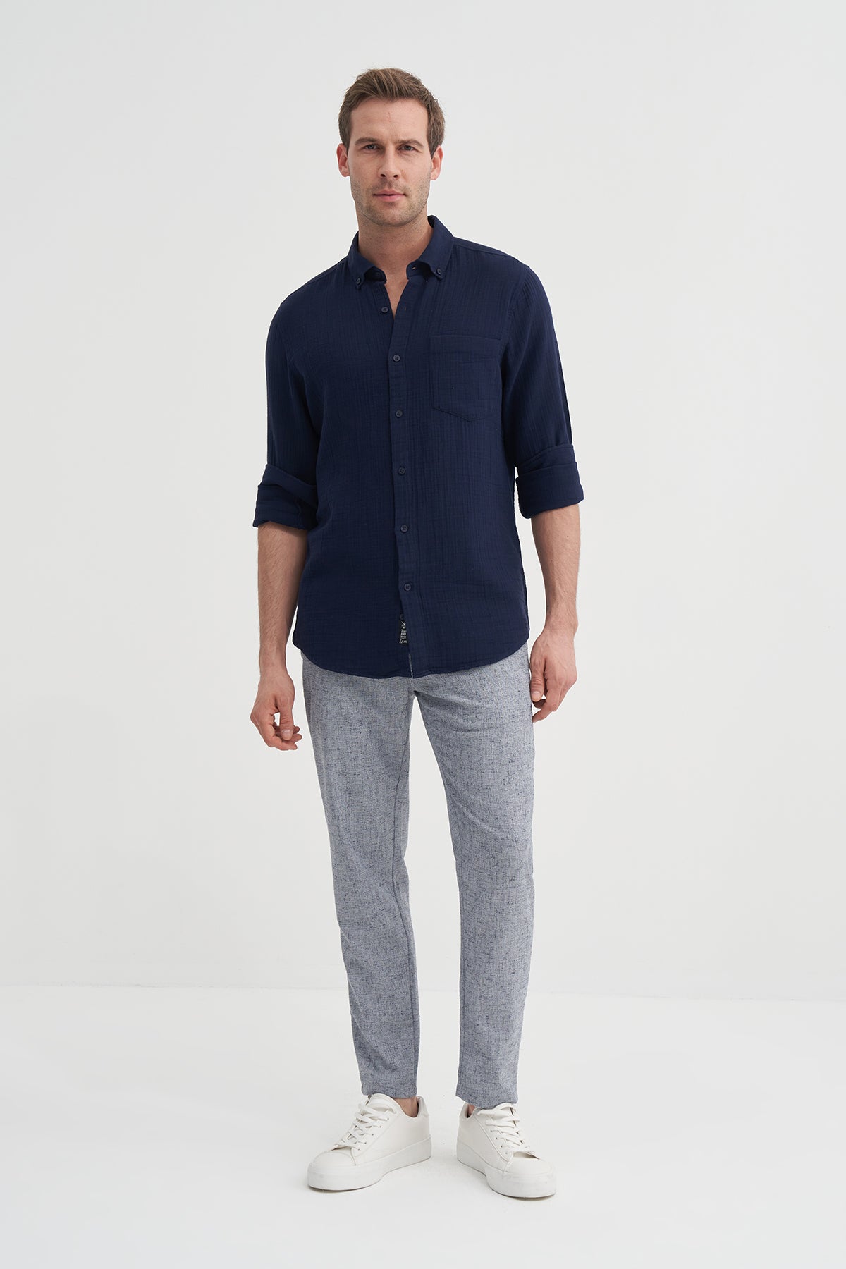 Regular Fit Pamuklu Müslin Uzun Kol Gömlek 2024 - Cazador