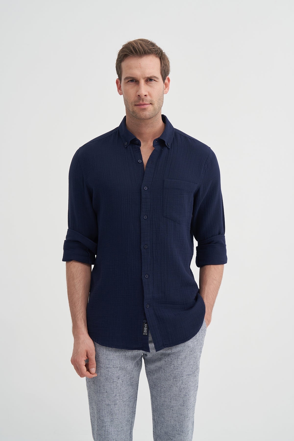 Regular Fit Cotton Muslin Long Sleeve Shirt 2024