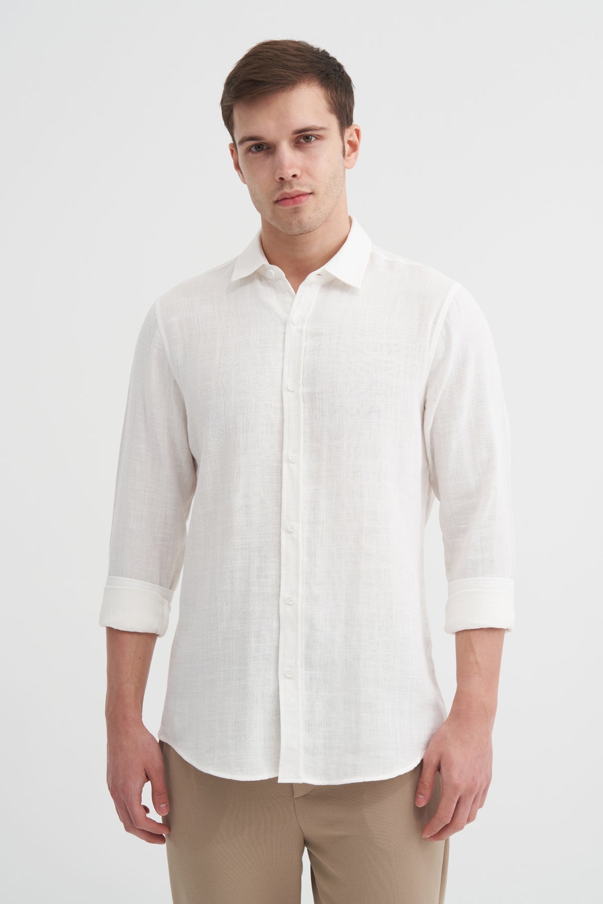 Regular Fit Dokuma Pamuklu Uzun Kol Gömlek 2056 - Cazador