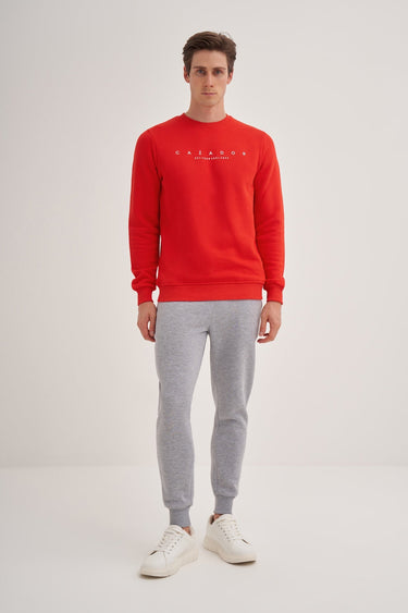 Thick Diagonal Textured 3 Thread Cotton Slim Fit Sweatshirt