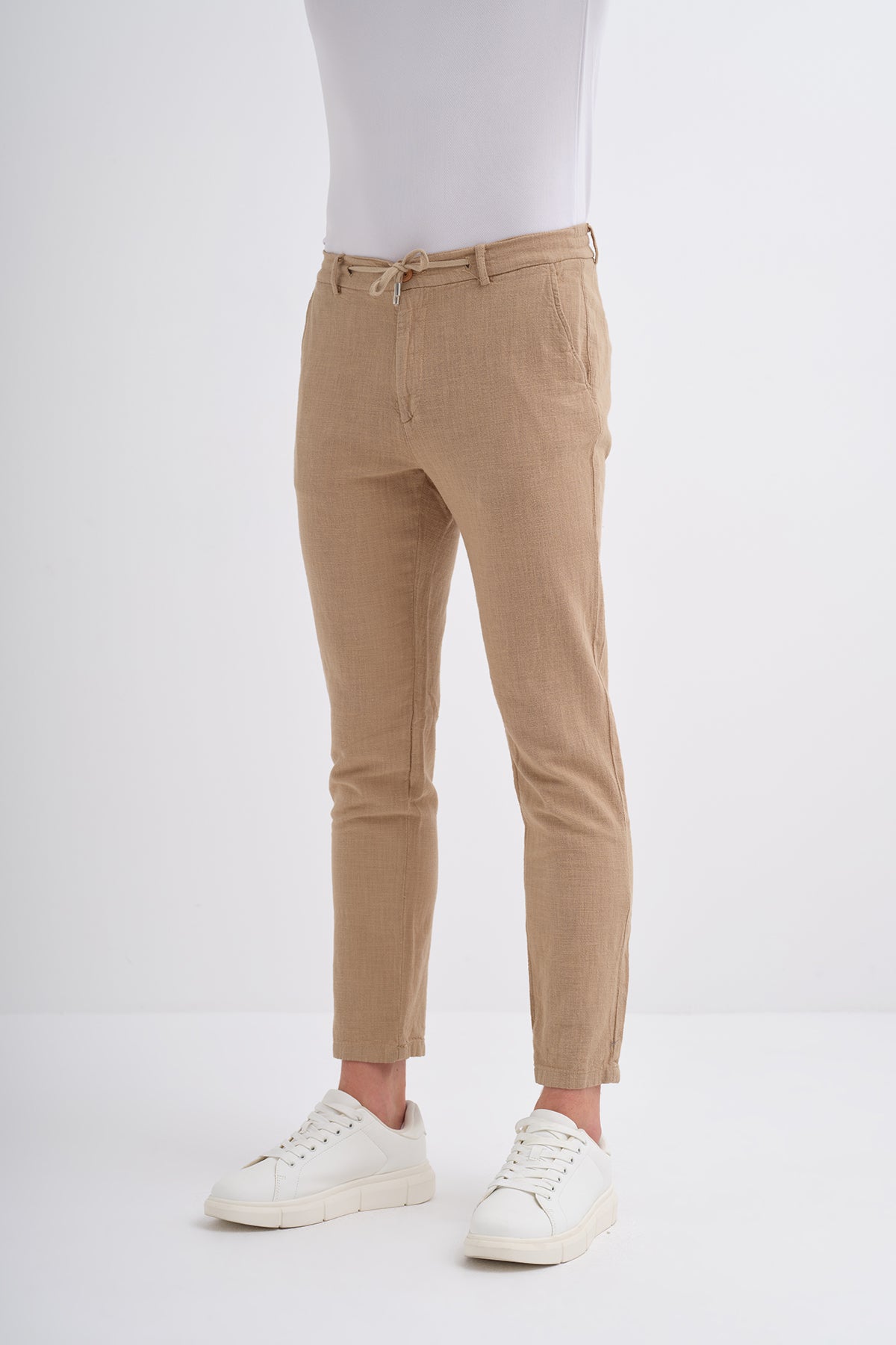 Summer Fabric Straight Leg Jogger Pants with Tie Waist