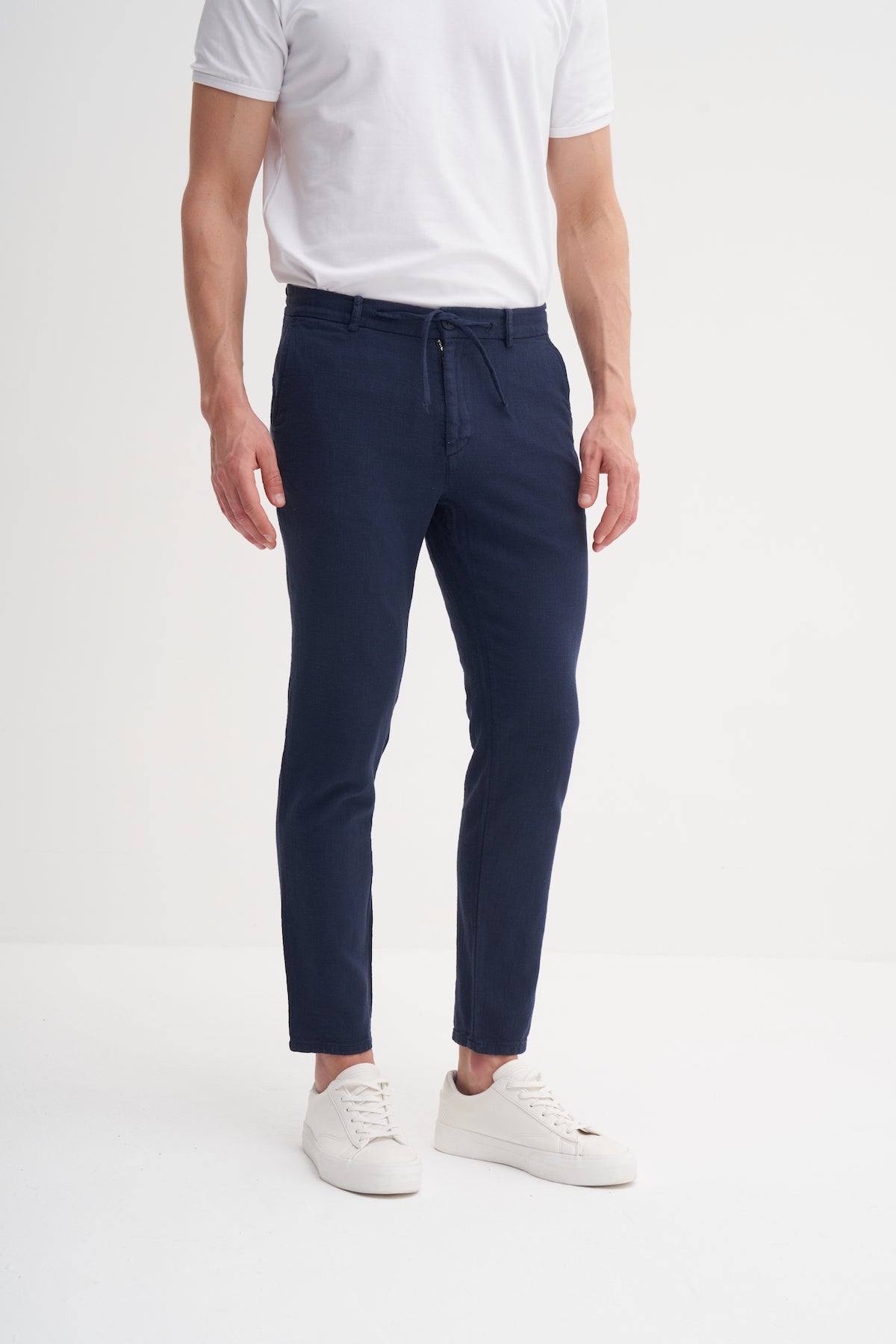 Summer Fabric Straight Leg Jogger Pants with Tie Waist