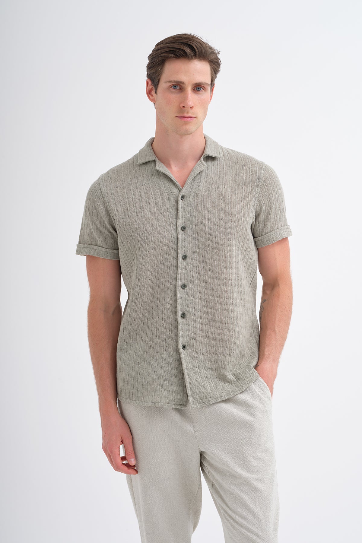 Regular Fit Örme Kısa Kol Gömlek 2002