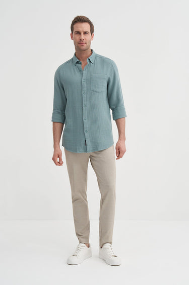 Regular Fit Pamuklu Müslin Uzun Kol Gömlek 2024 - Cazador