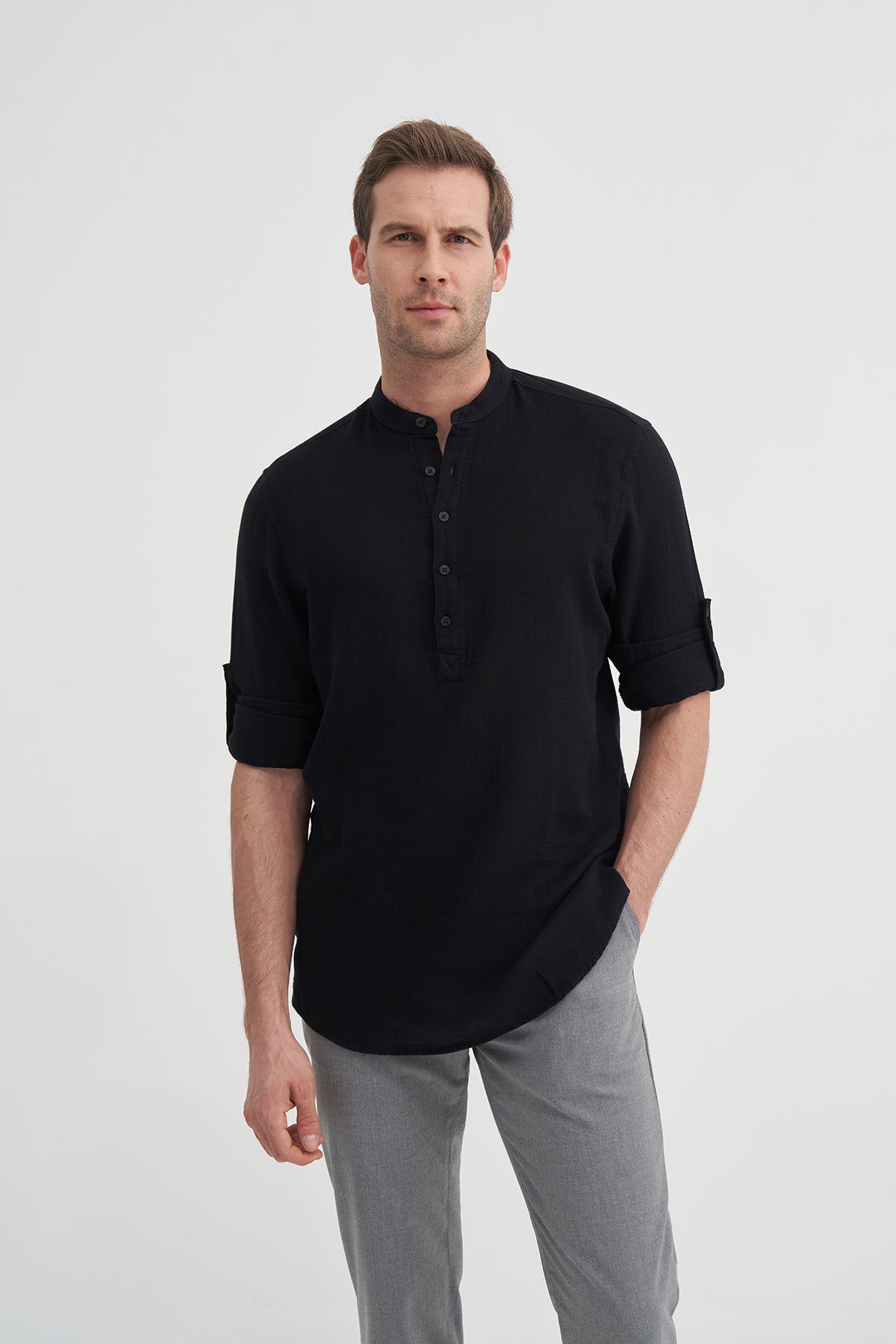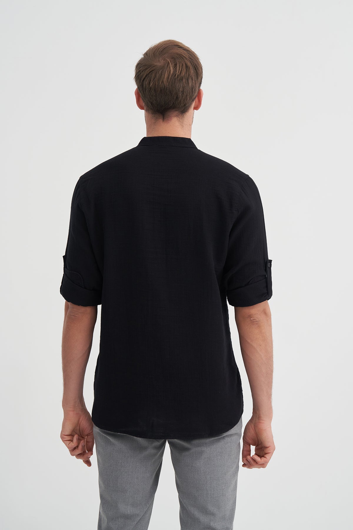 Regular Fit Pamuklu Müslin Uzun Kol Gömlek