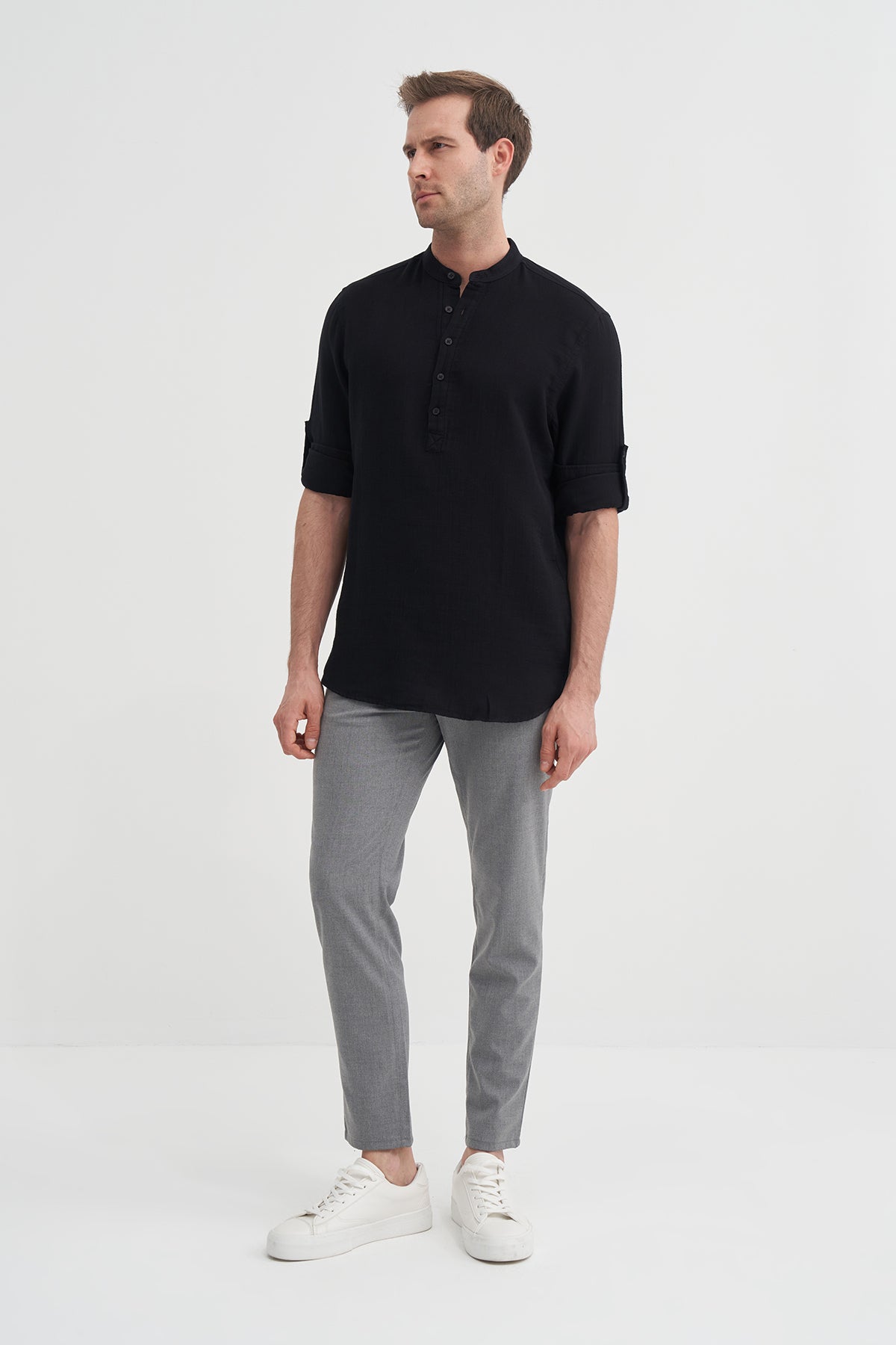 Doğal ve nefes alabilen pamuklu müslin dokusuyla gün boyu konfor sunar. Regular fit kesimiyle rahat bir kullanım sağlayan bu uzun kol gömlek, günlük stilinize şıklık katacak.