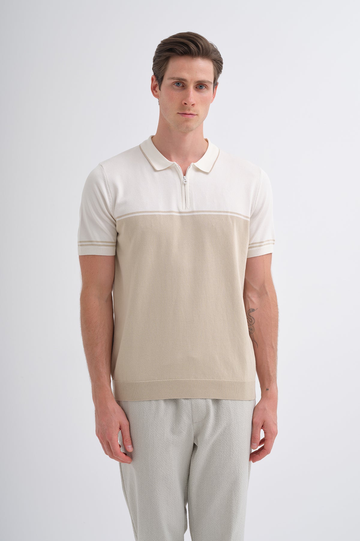 Polo Yaka Regular Fit Fermuarlı Triko Tişört 3032
