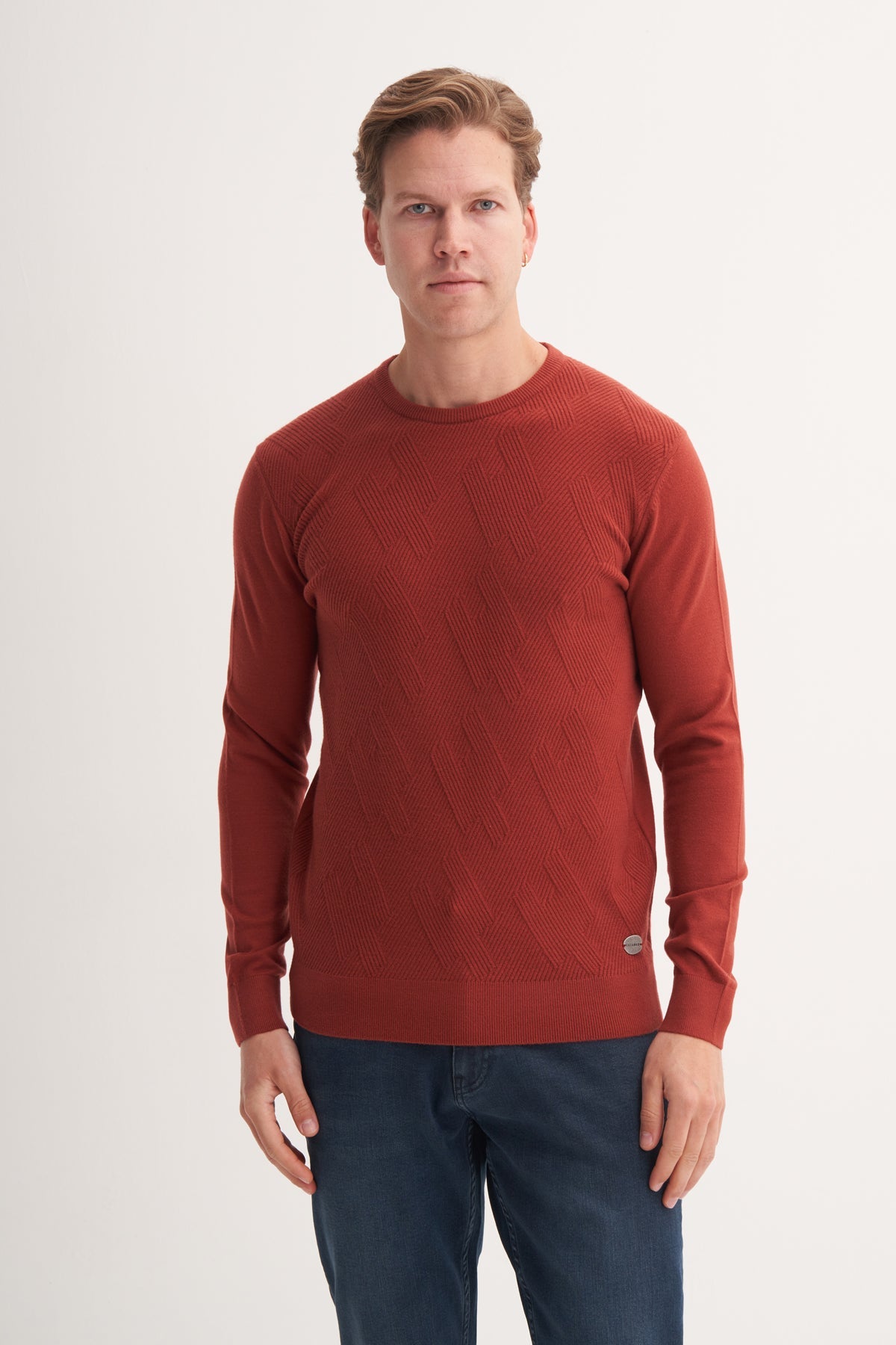 Yumuşak dokulu akrilik, doğal pamuk ve dayanıklı yapılı polyester karışımıyla gün boyu konfor sunan bu bisiklet yaka kazak, soft touch hissiyle öne çıkar. Slim fit kesimi ile modern bir görünüm sağlar.
