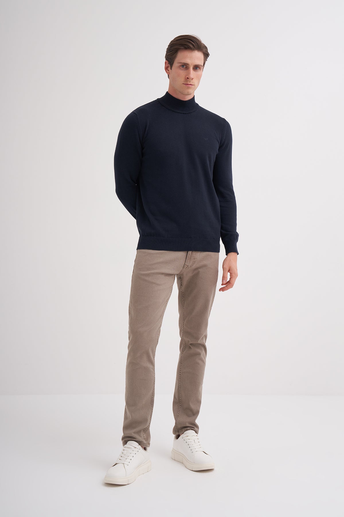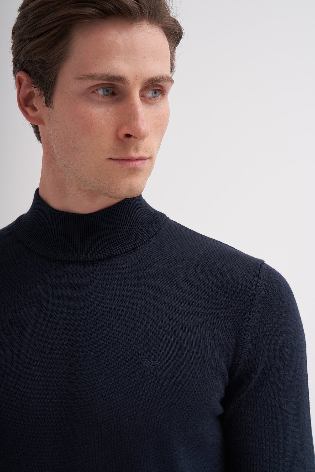 Slim Fit Pamuk Kumaş Basic Yarım Balıkçı Kazak