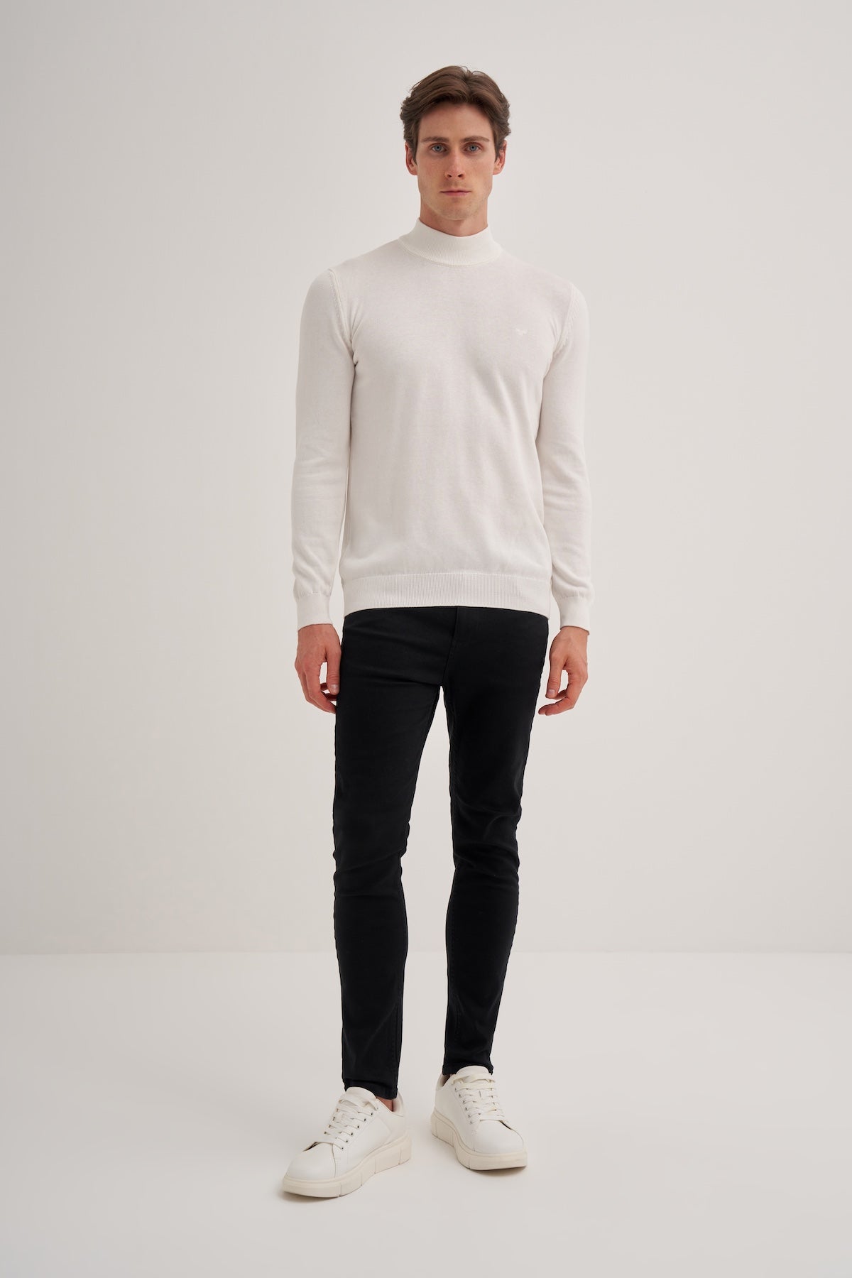 Slim Fit Pamuk Kumaş Basic Yarım Balıkçı Kazak