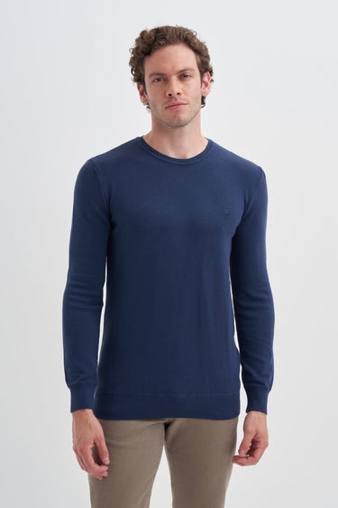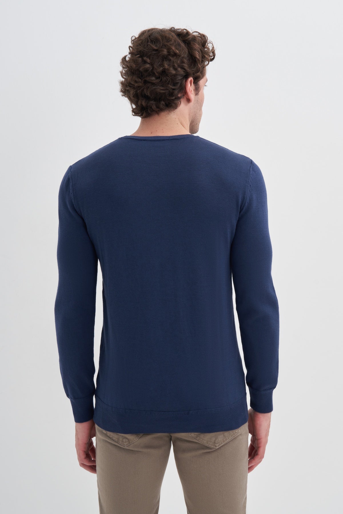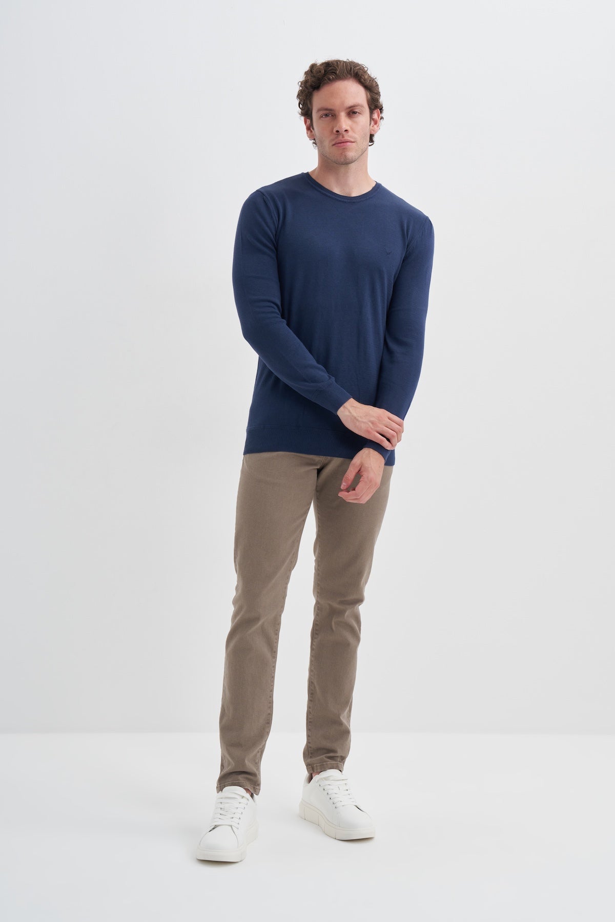 Slim Fit Pamuk Kumaş Basic Bisiklet Yaka Kazak