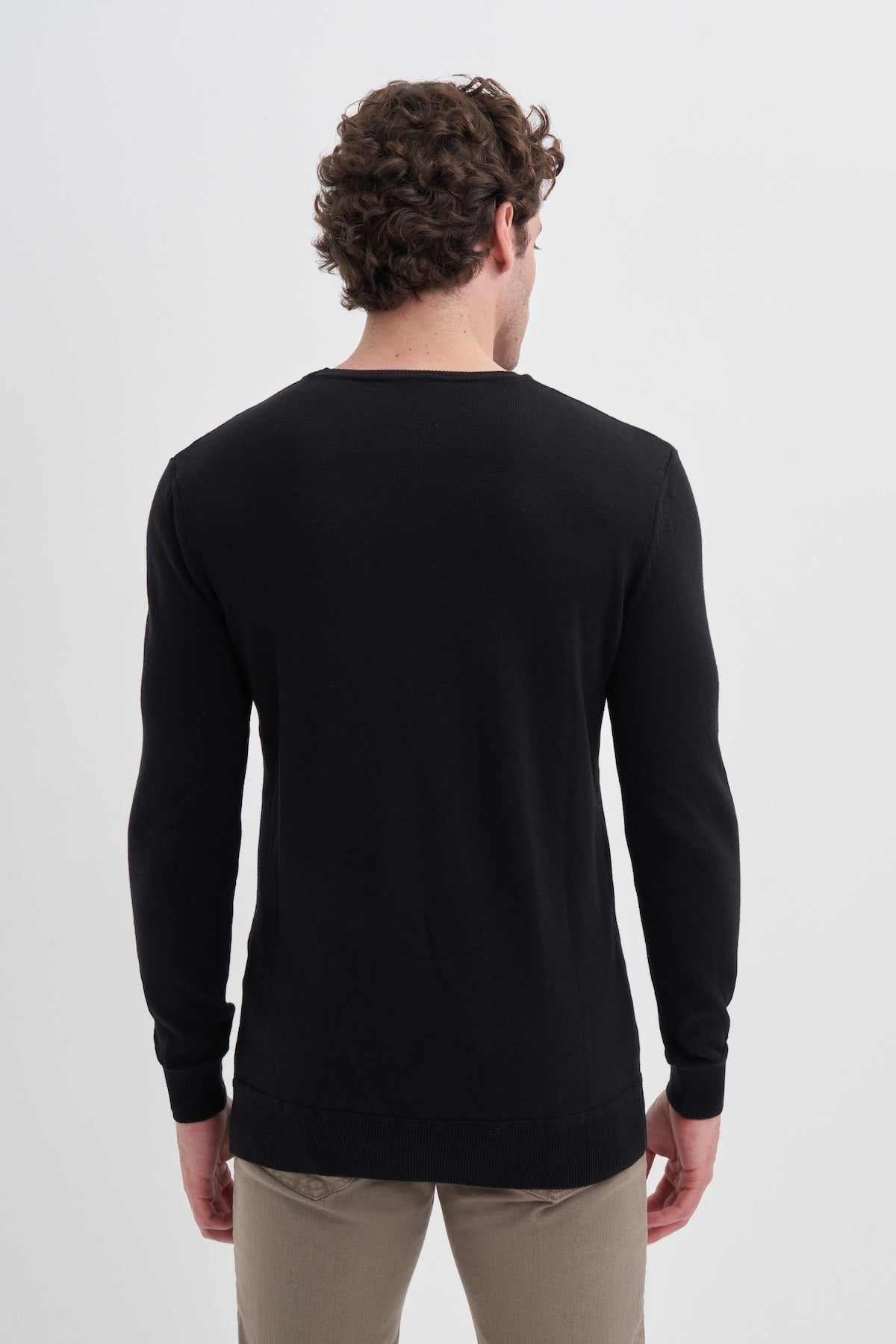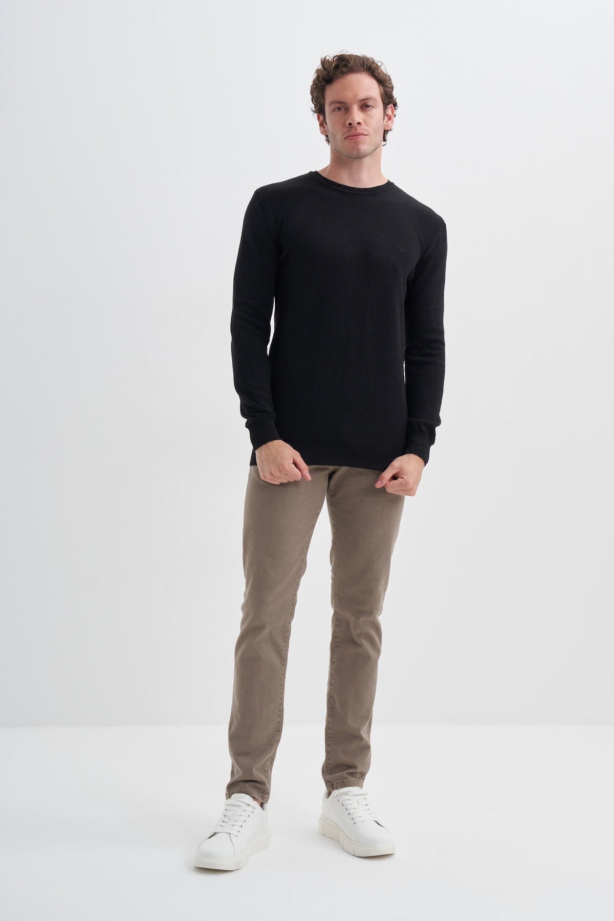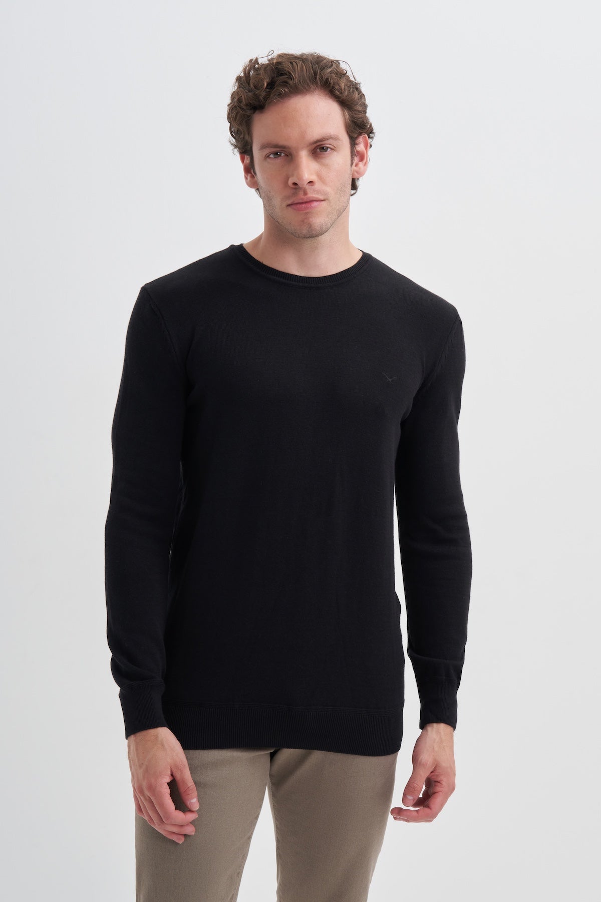 Slim Fit Pamuk Kumaş Basic Bisiklet Yaka Kazak