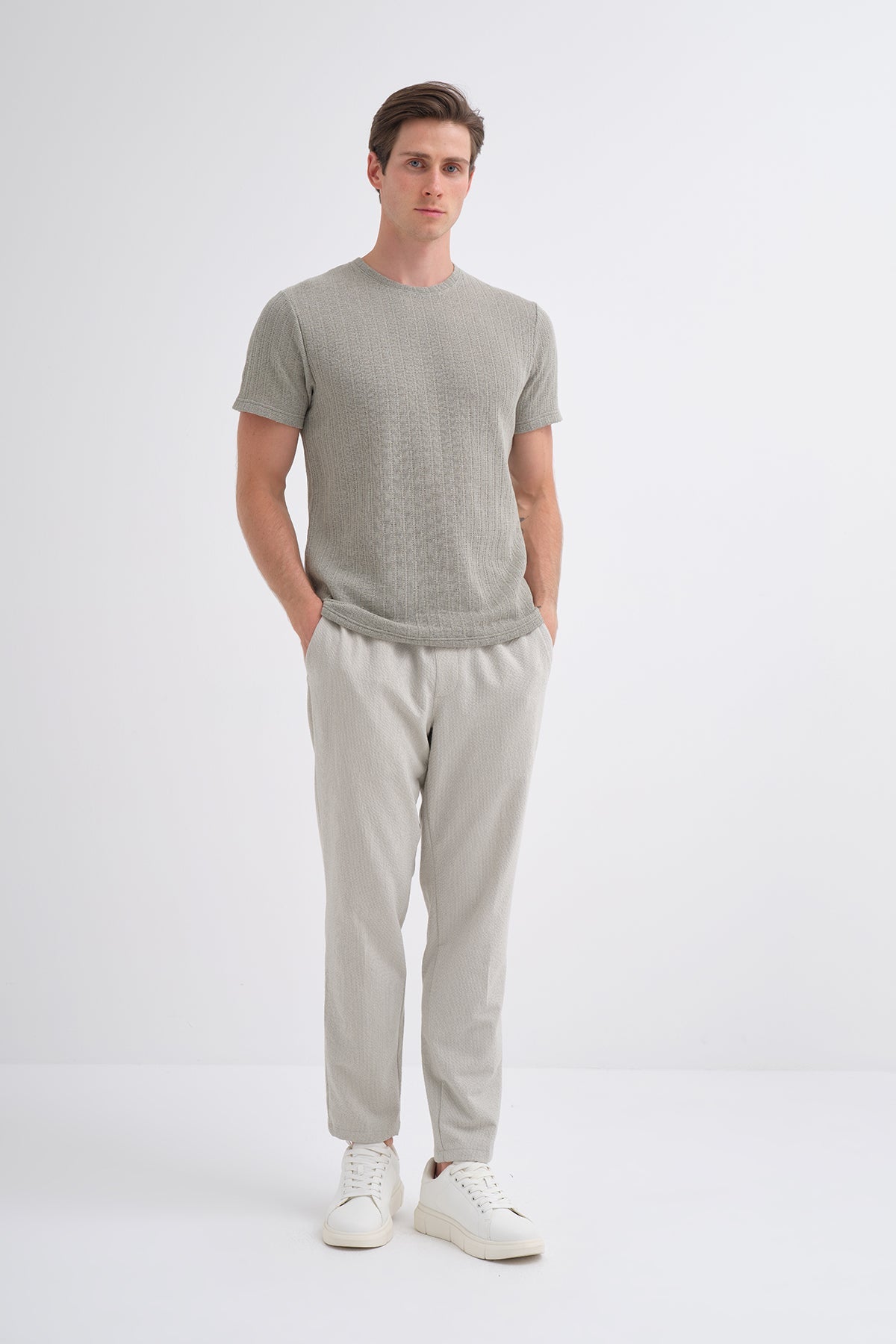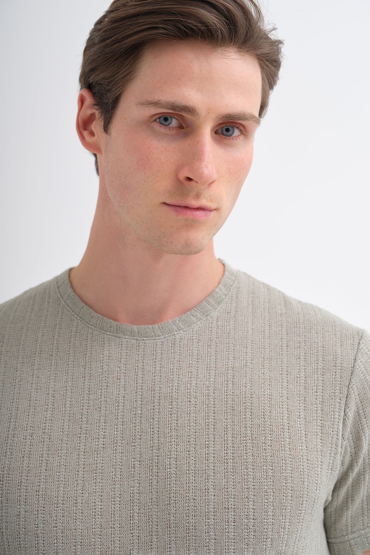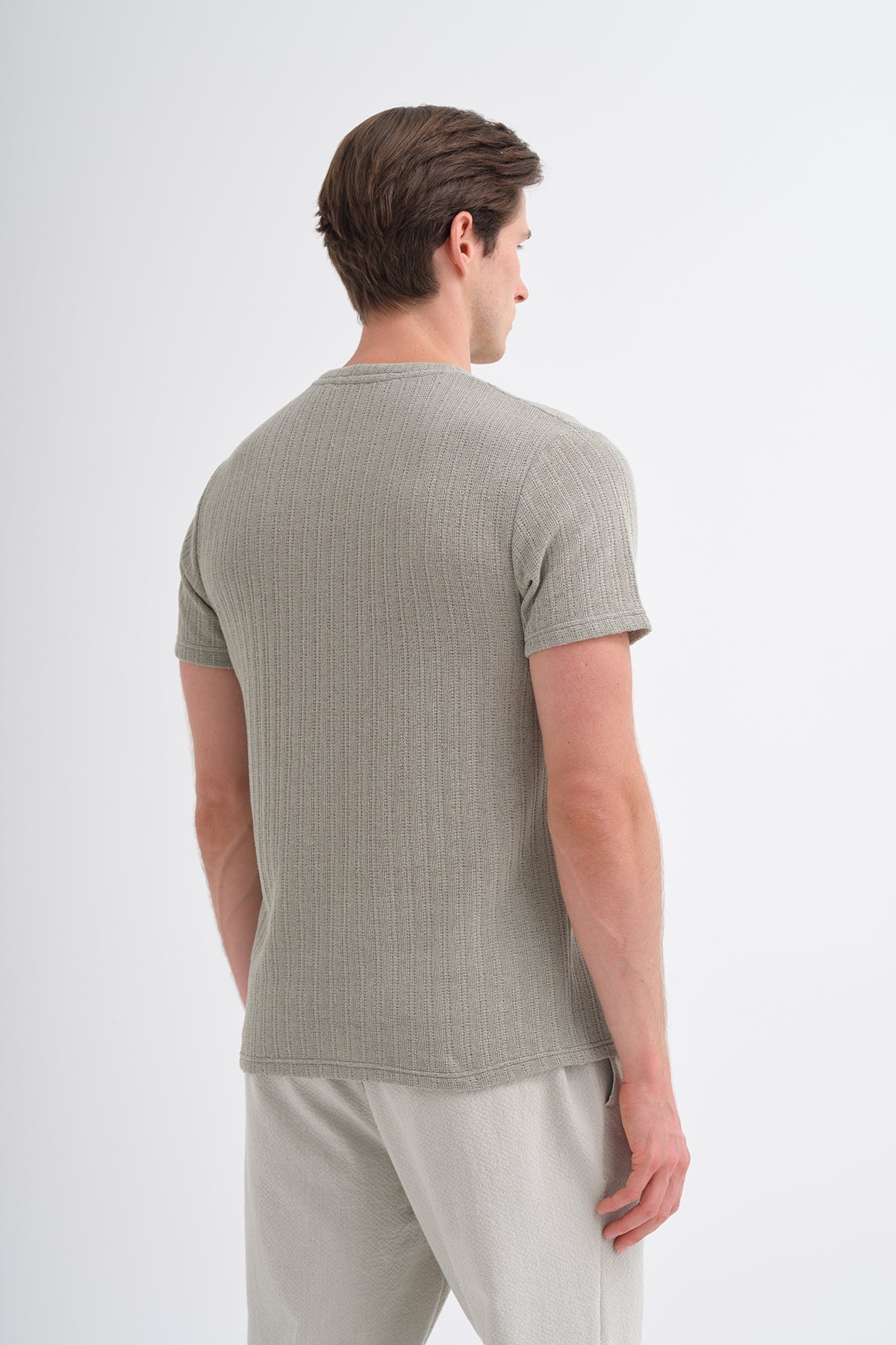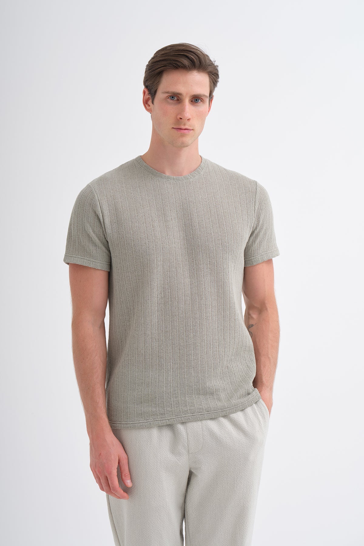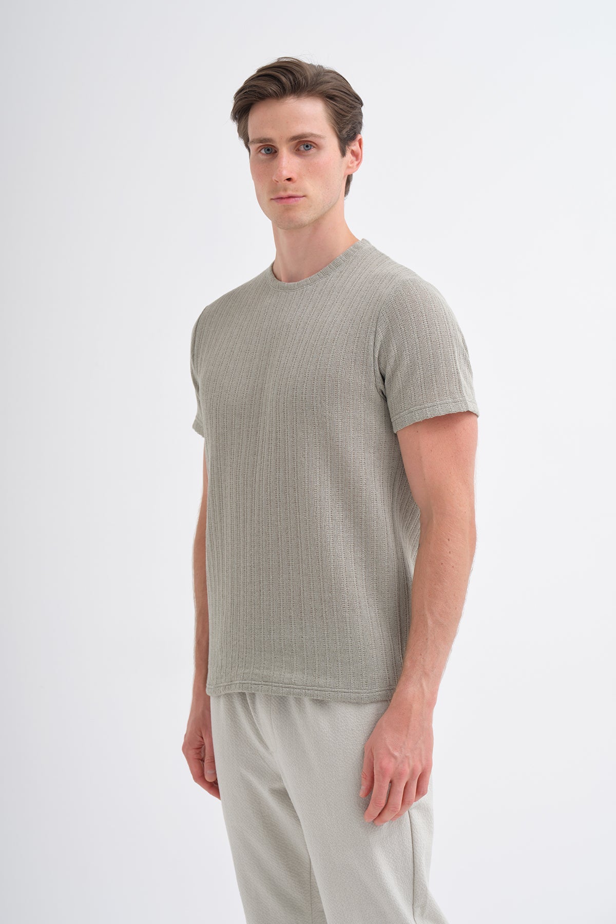 Regular Fit Bisiklet Yaka Örme Havlu Desenli Tişört 4011