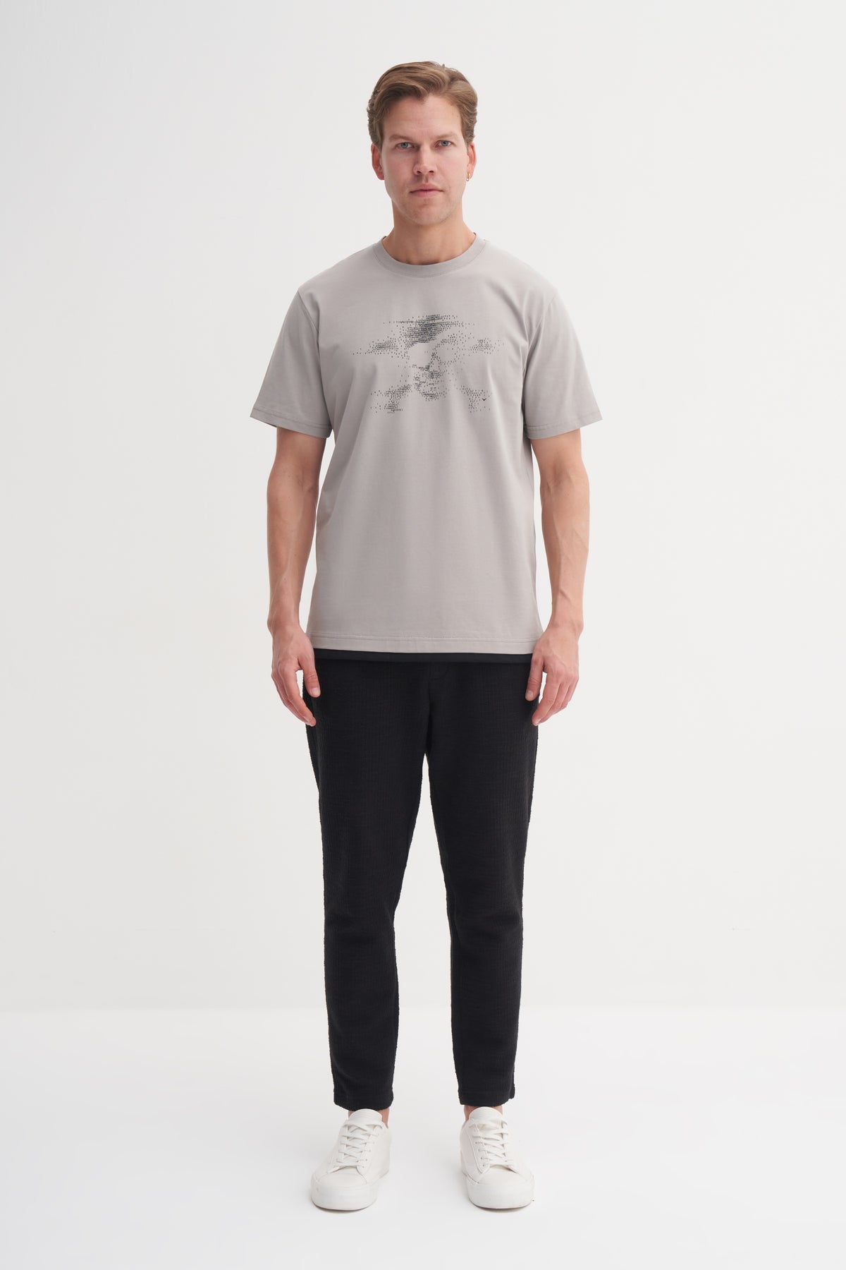 Bisiklet Yaka Regular Fit Pamuklu Desenli Tişört 4017