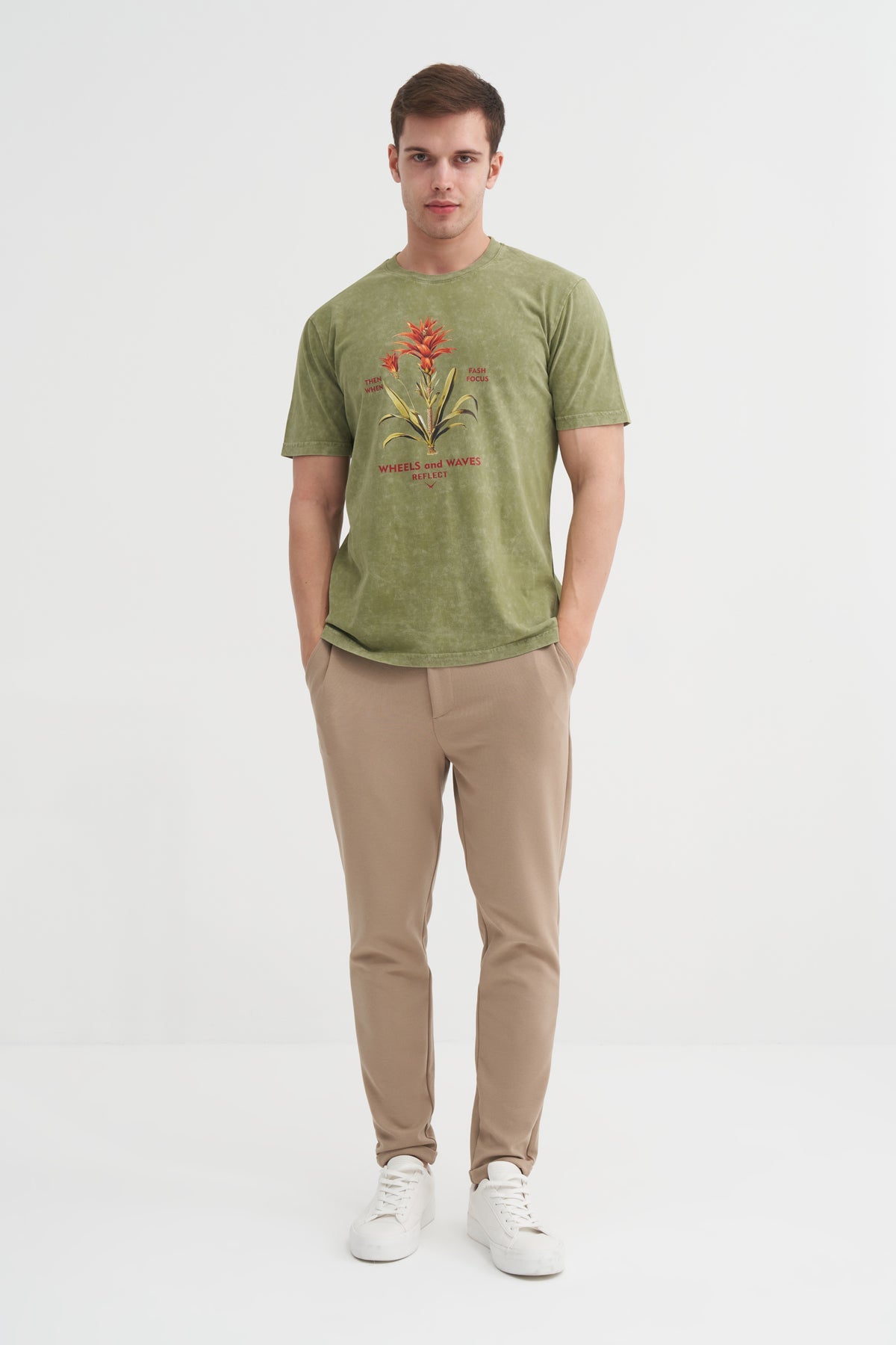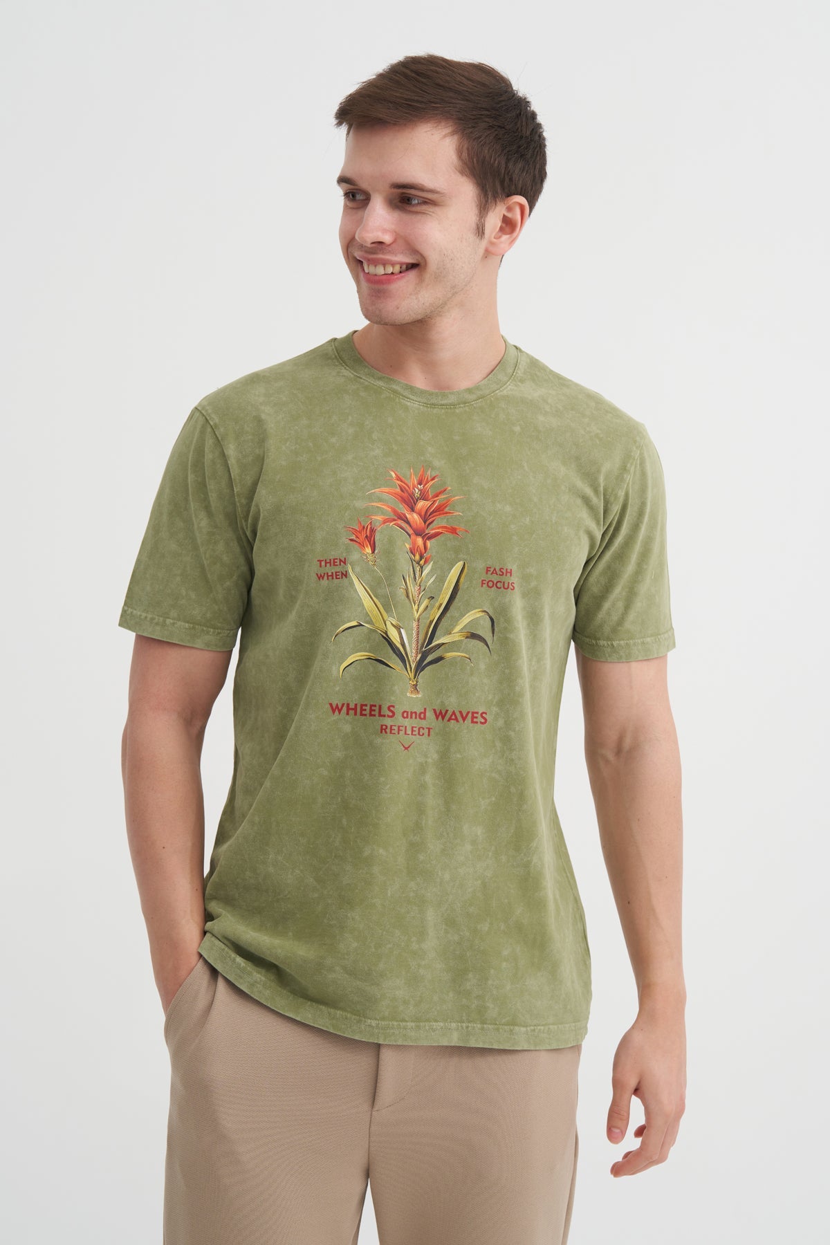 Bisiklet Yaka Regular Fit Pamuklu Desenli Tişört 4046