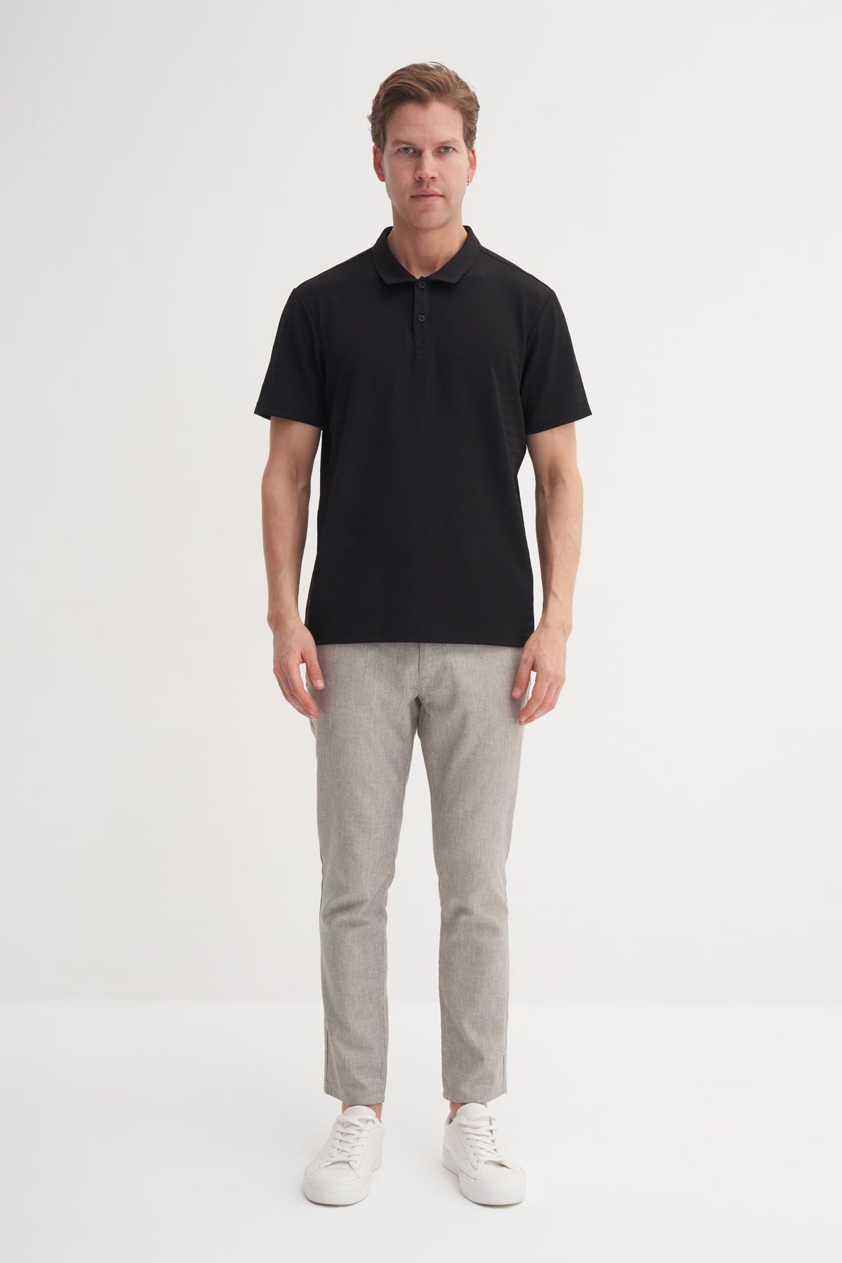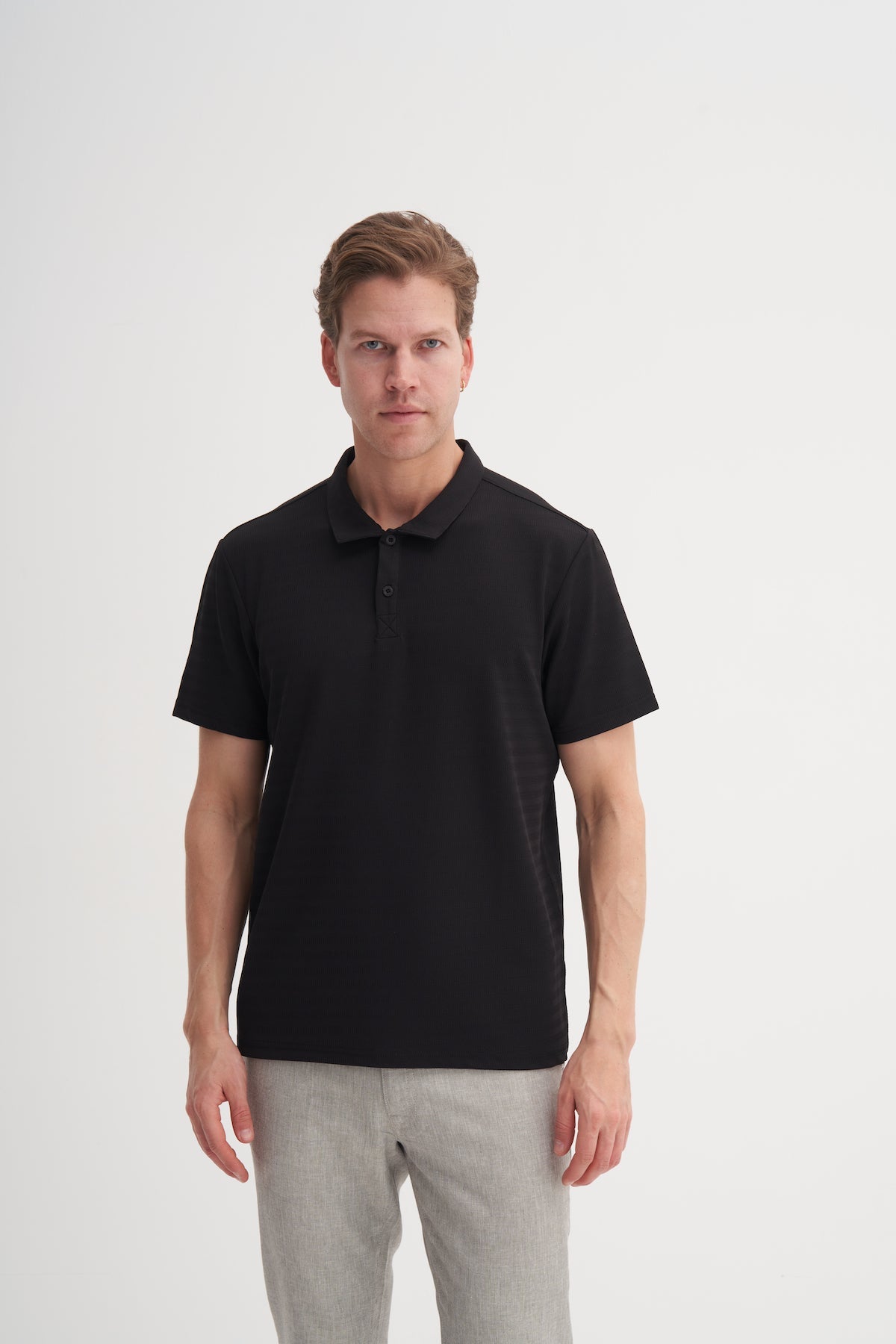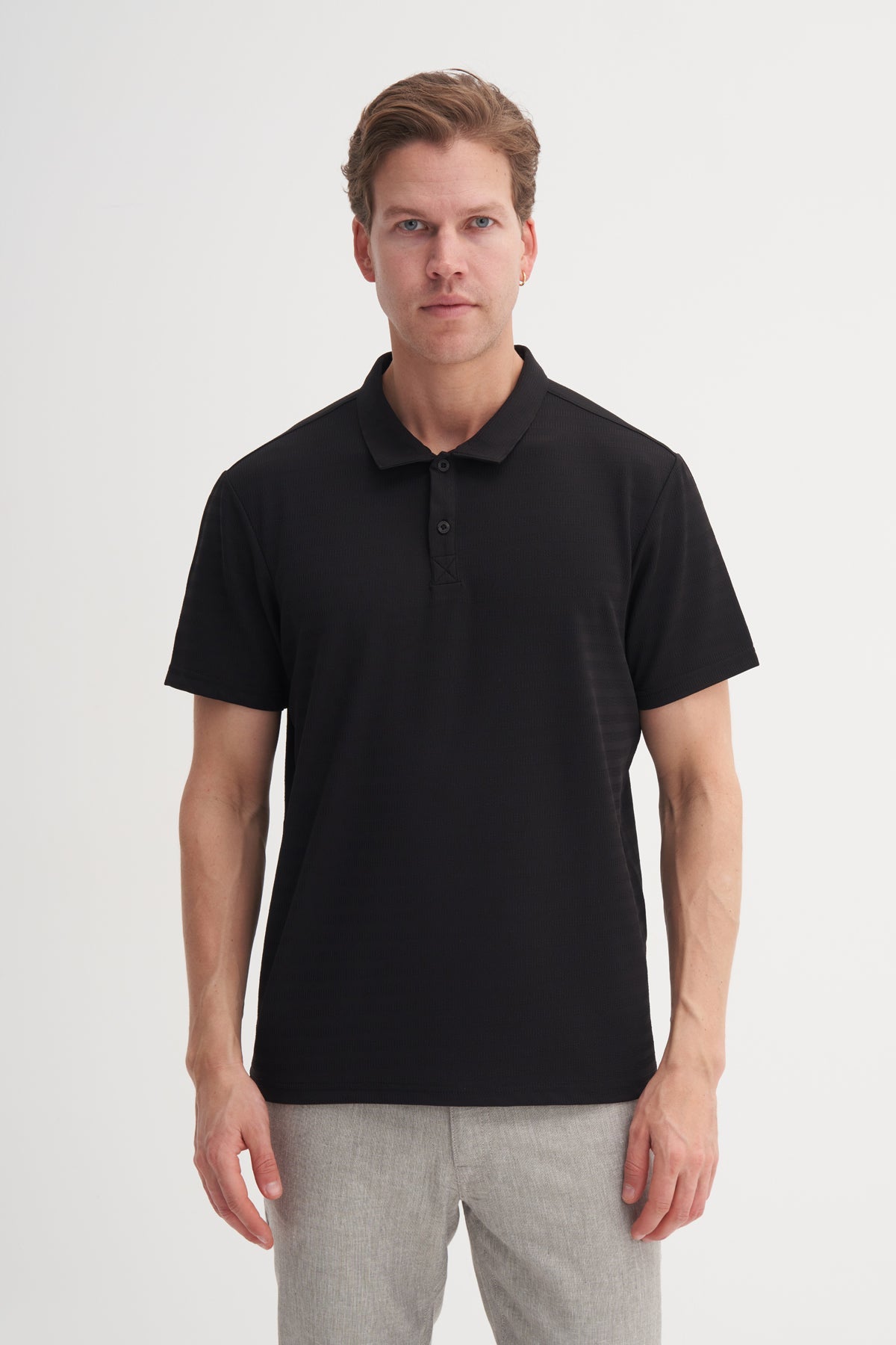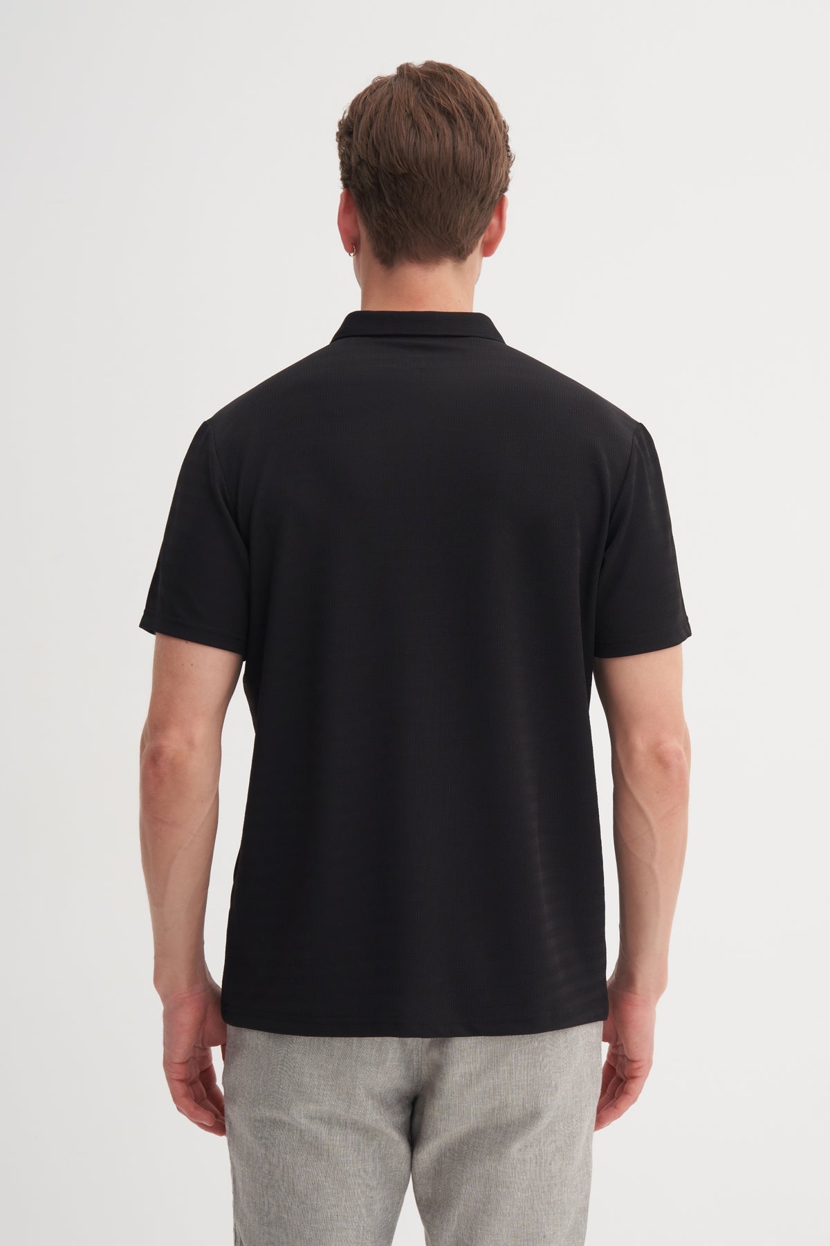 Polo Yaka Regular Fit Örme Jakarlı Tişört 4048