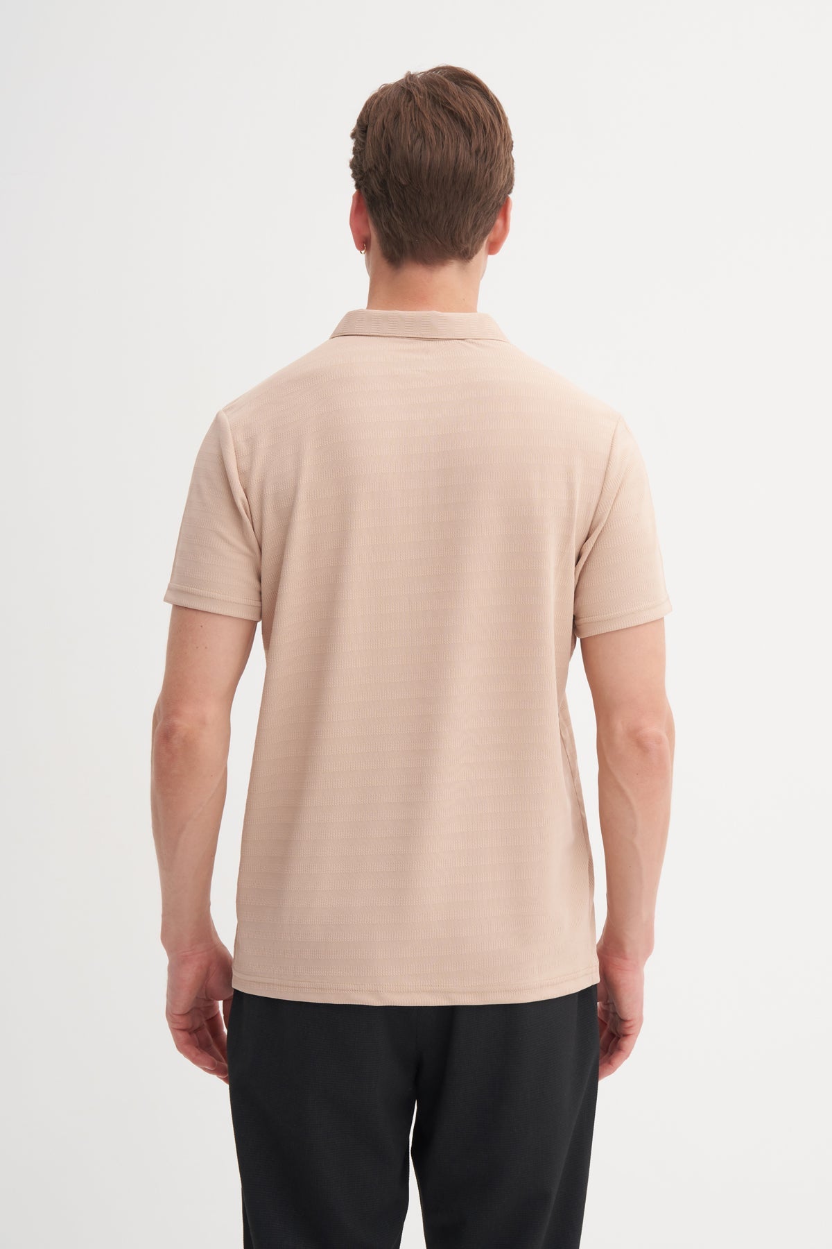 Polo Yaka Regular Fit Örme Jakarlı Tişört 4048