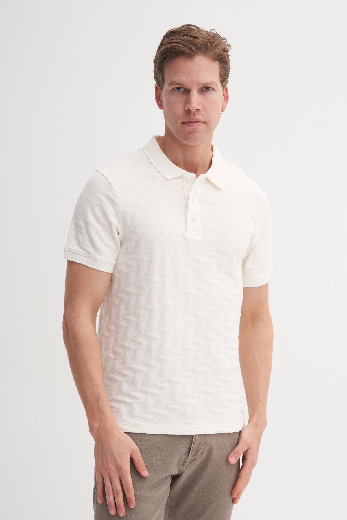 Polo Yaka Regular Fit Örme Jakarlı Tişört 4062