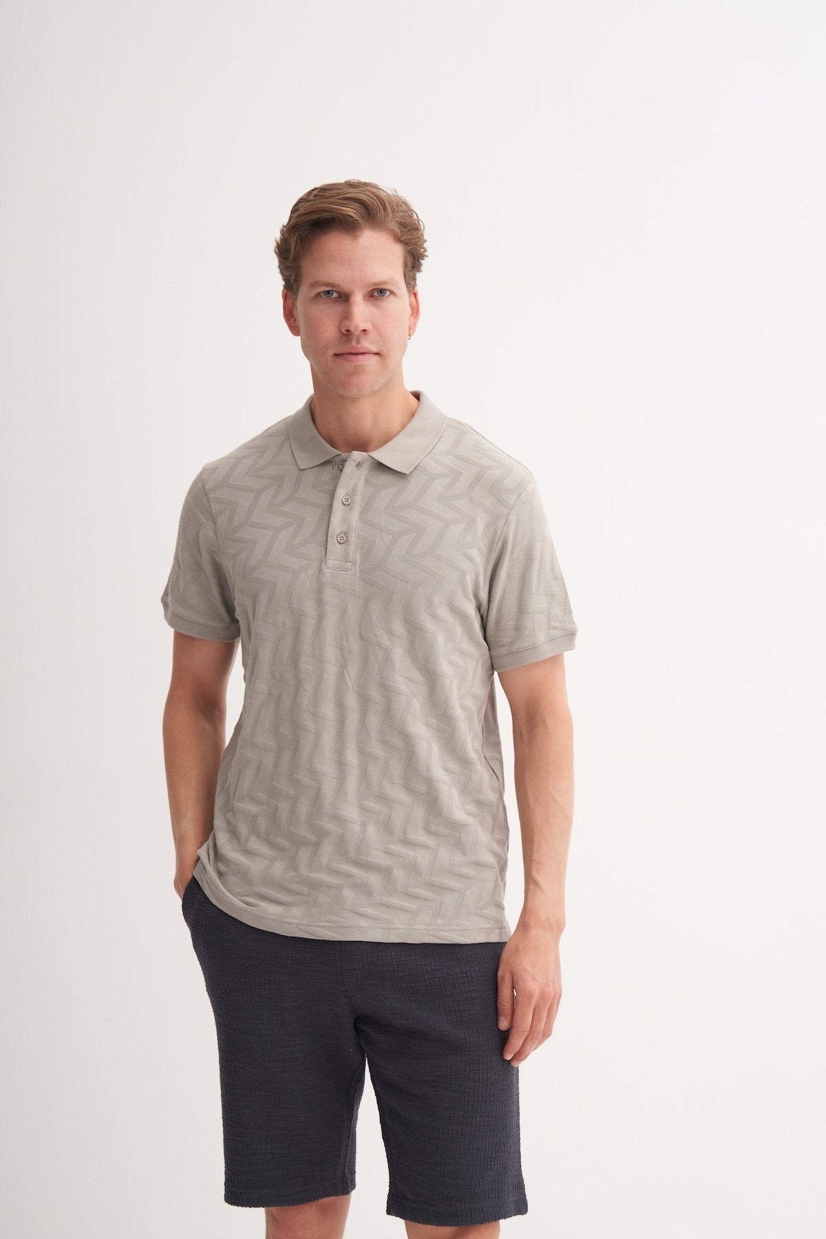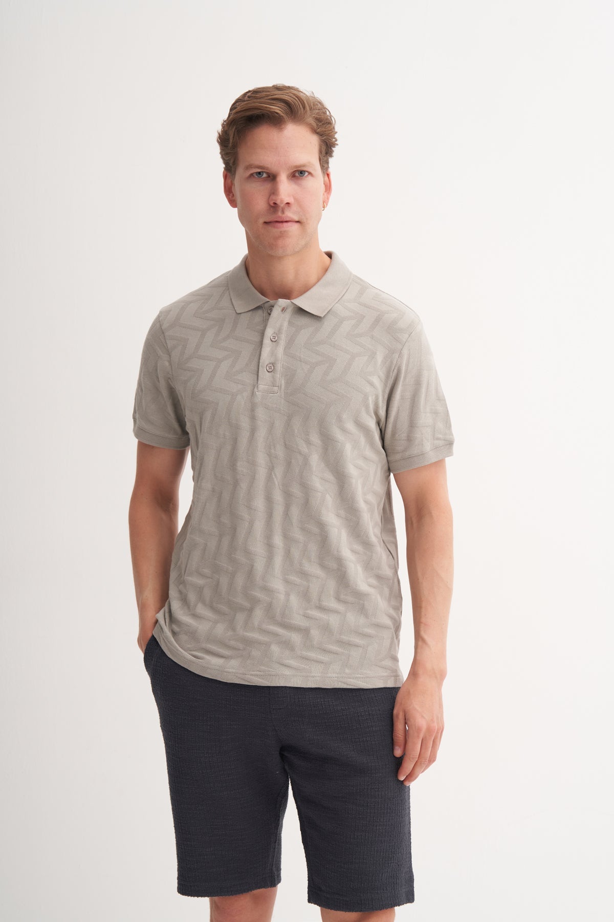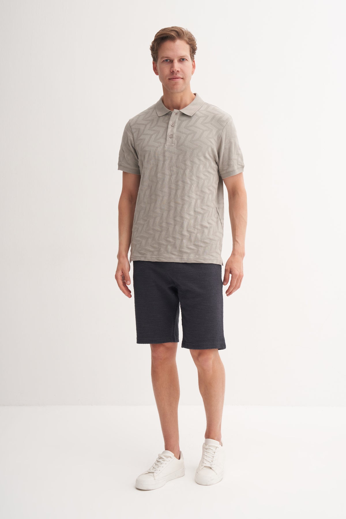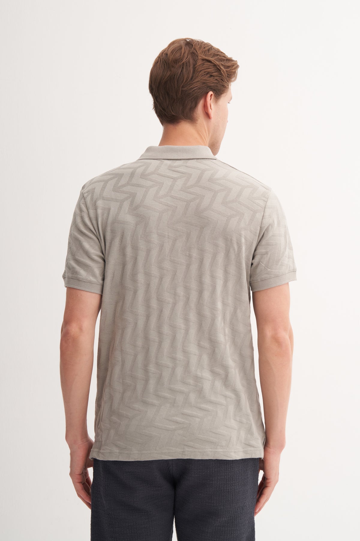 Polo Yaka Regular Fit Örme Jakarlı Tişört 4062