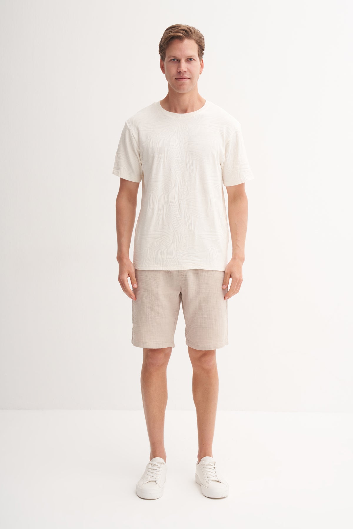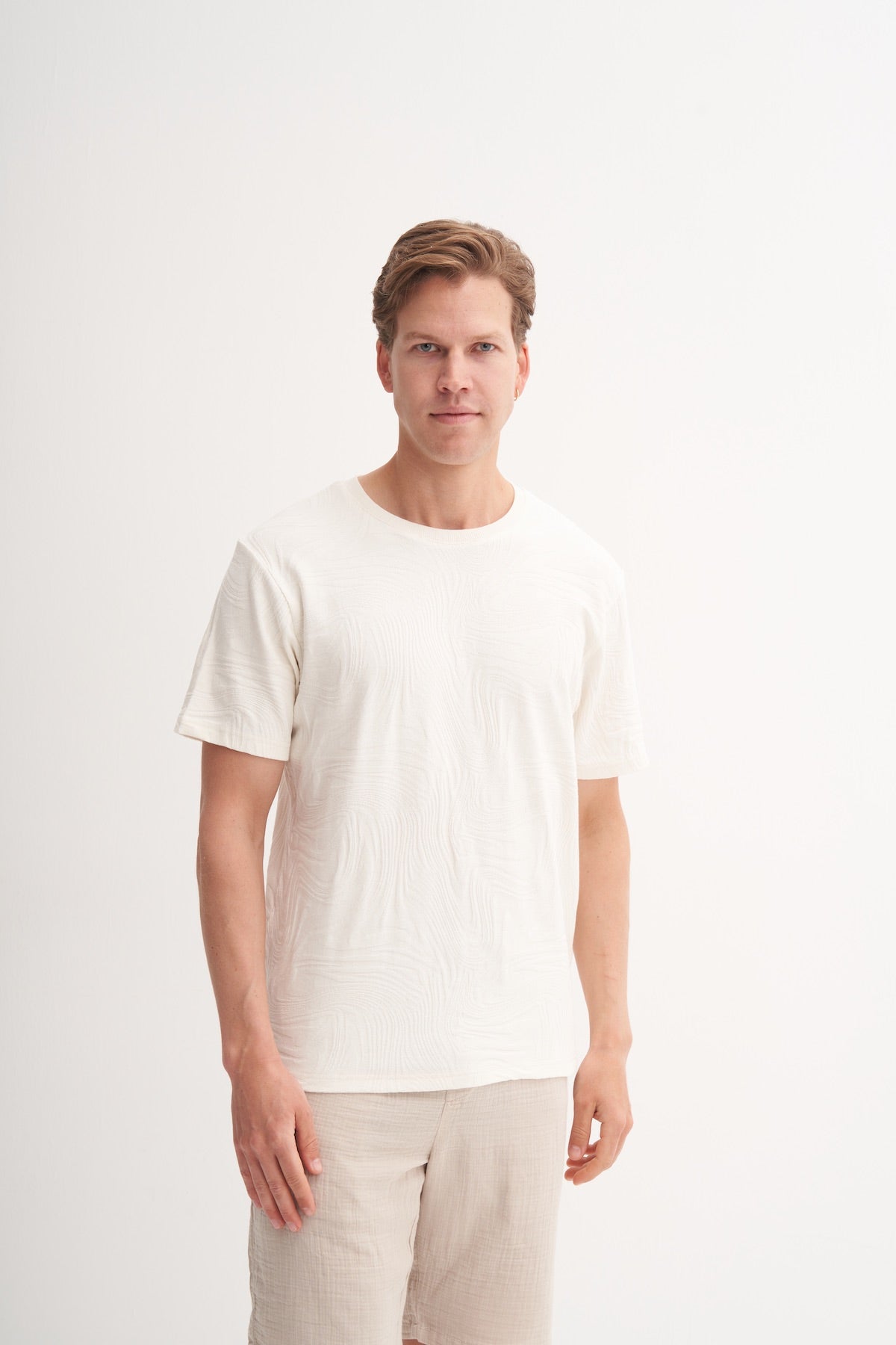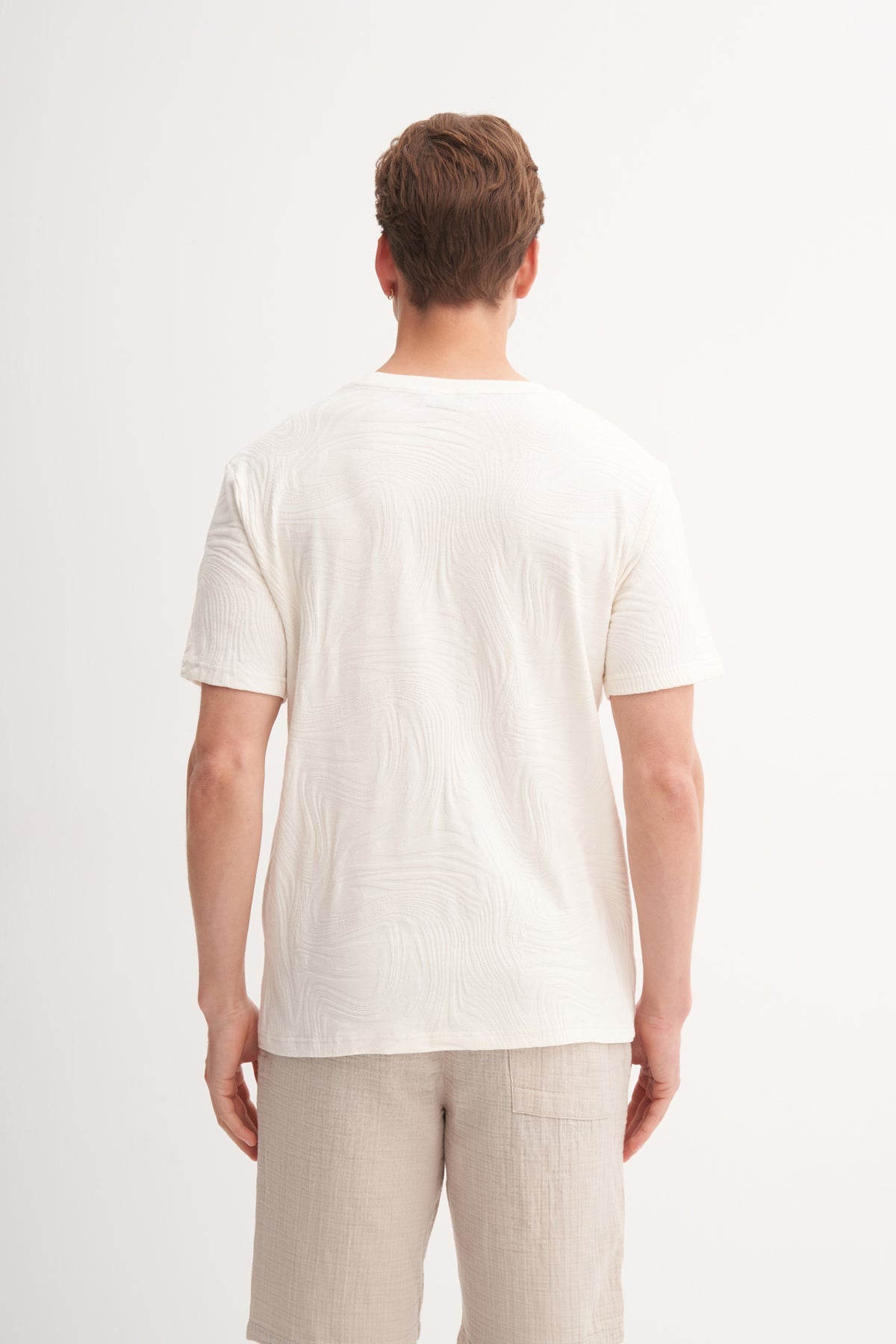 Bisiklet Yaka Regular Fit Örme Dalga Desenli Tişört 4065 - Cazador