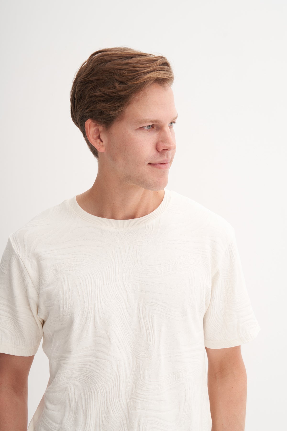 Bisiklet Yaka Regular Fit Örme Dalga Desenli Tişört 4065