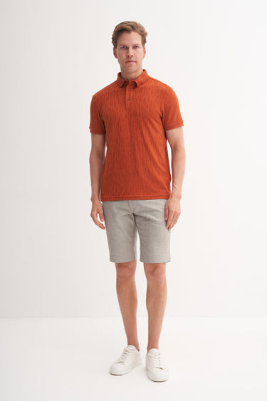 Polo Yaka Regular Fit Örme Desenli Tişört 4077