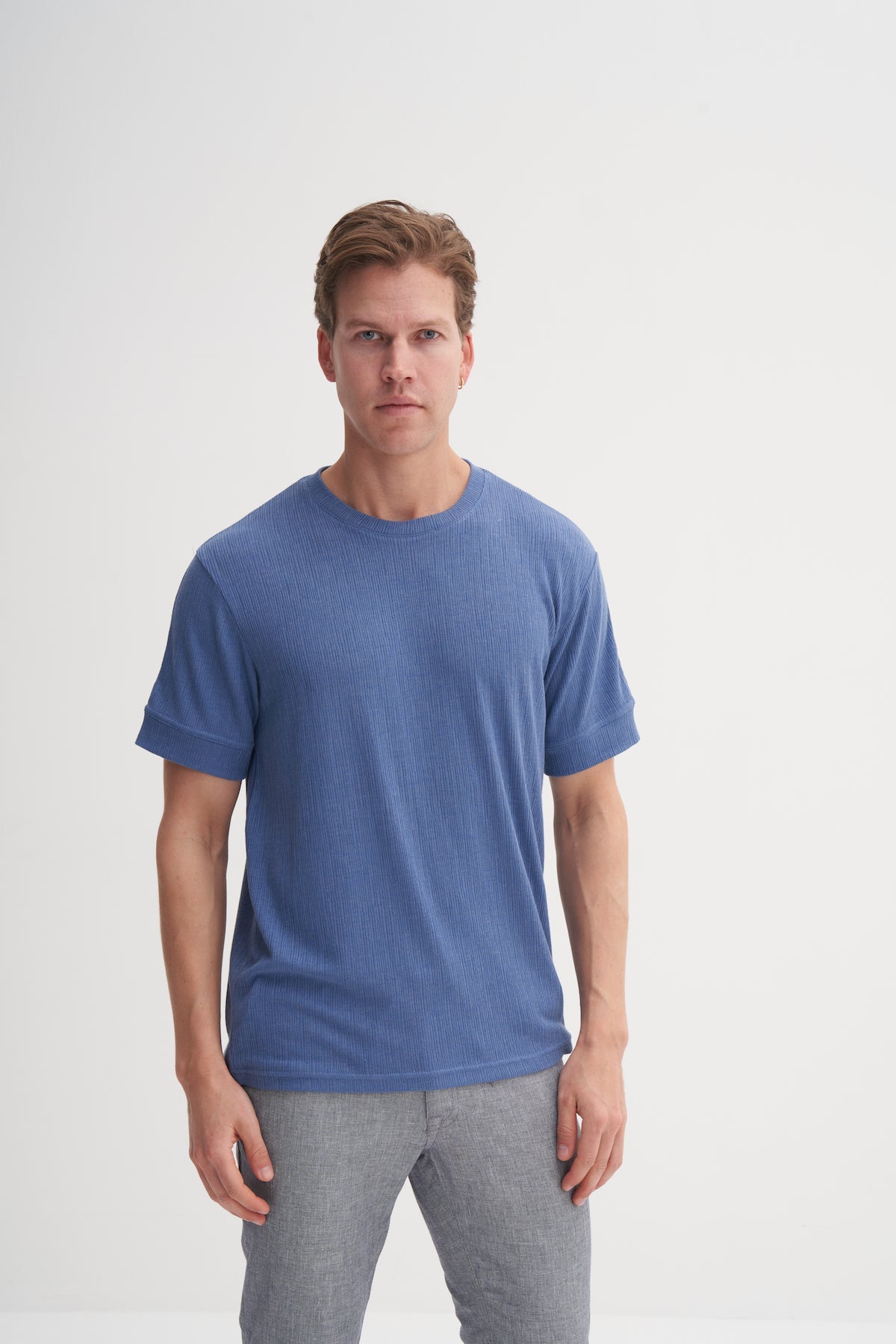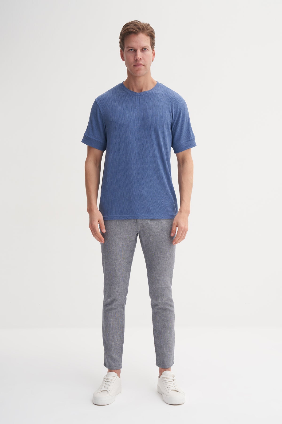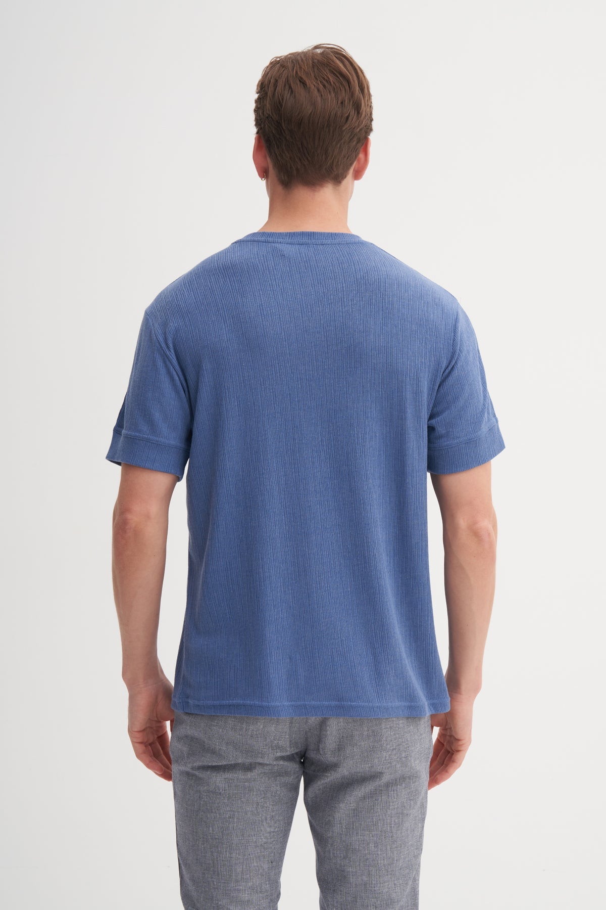 Bisiklet Yaka Regular Fit Örme Desenli Tişört 4078