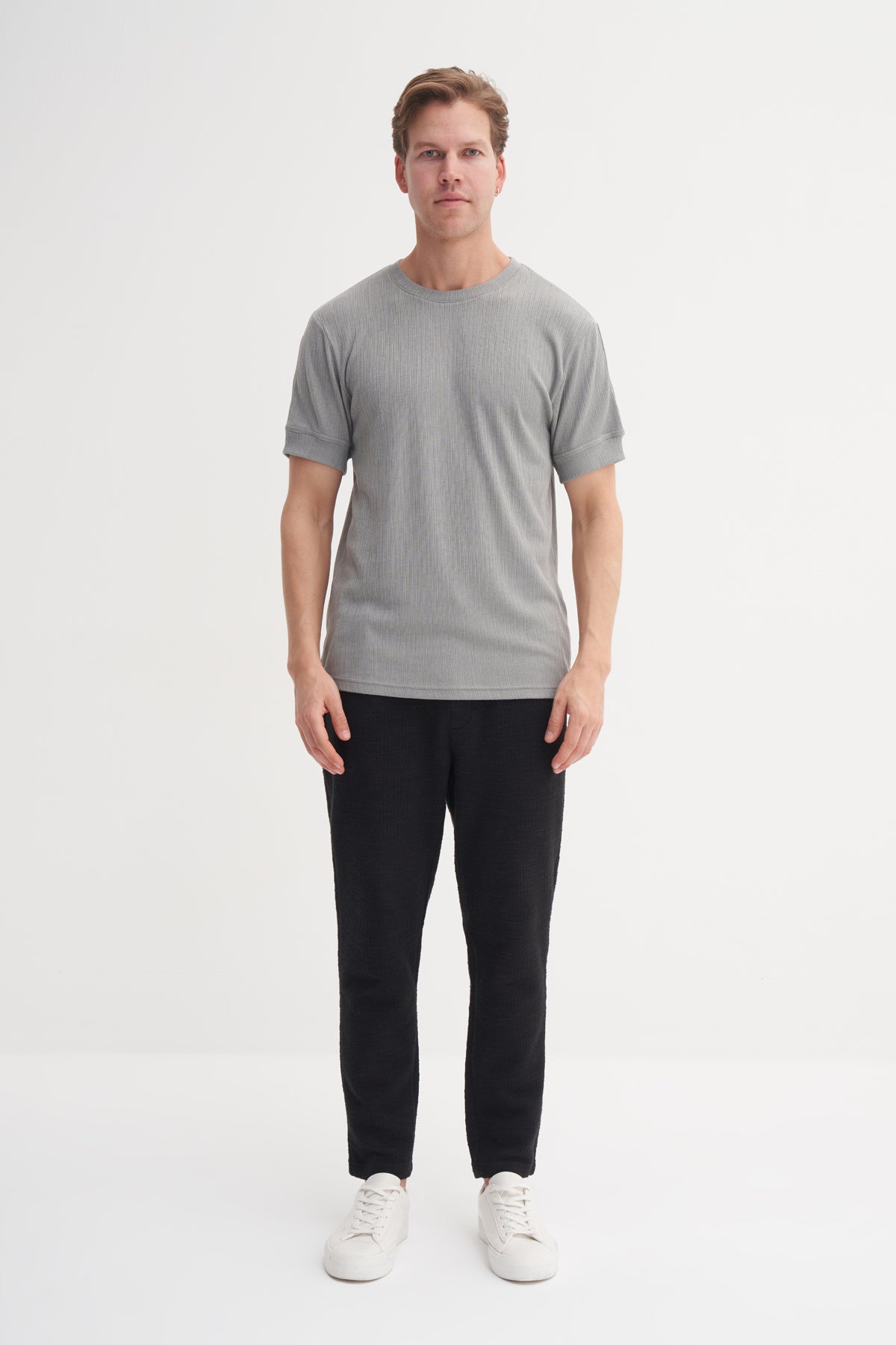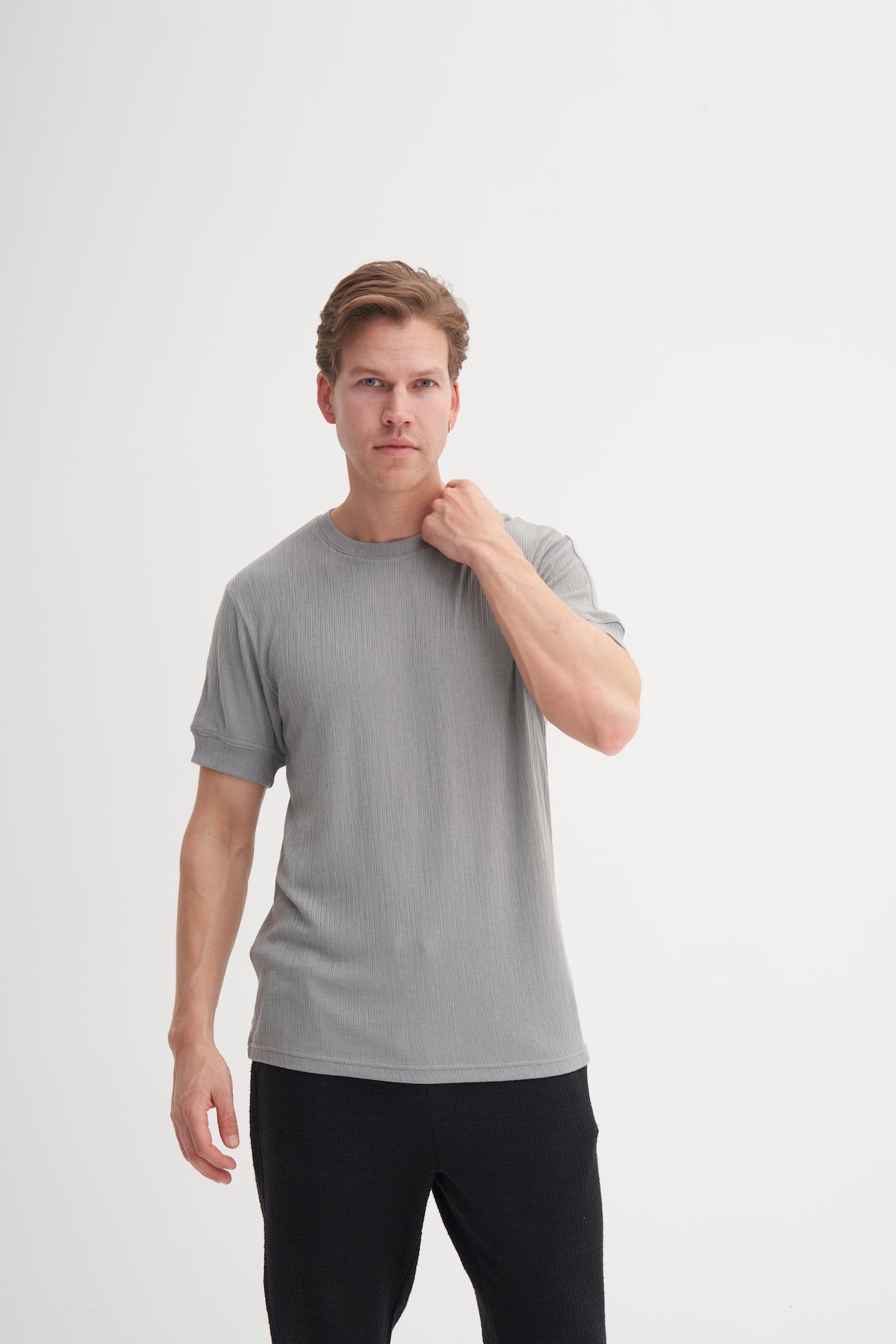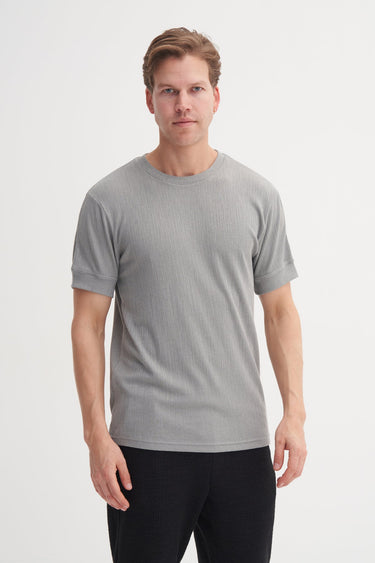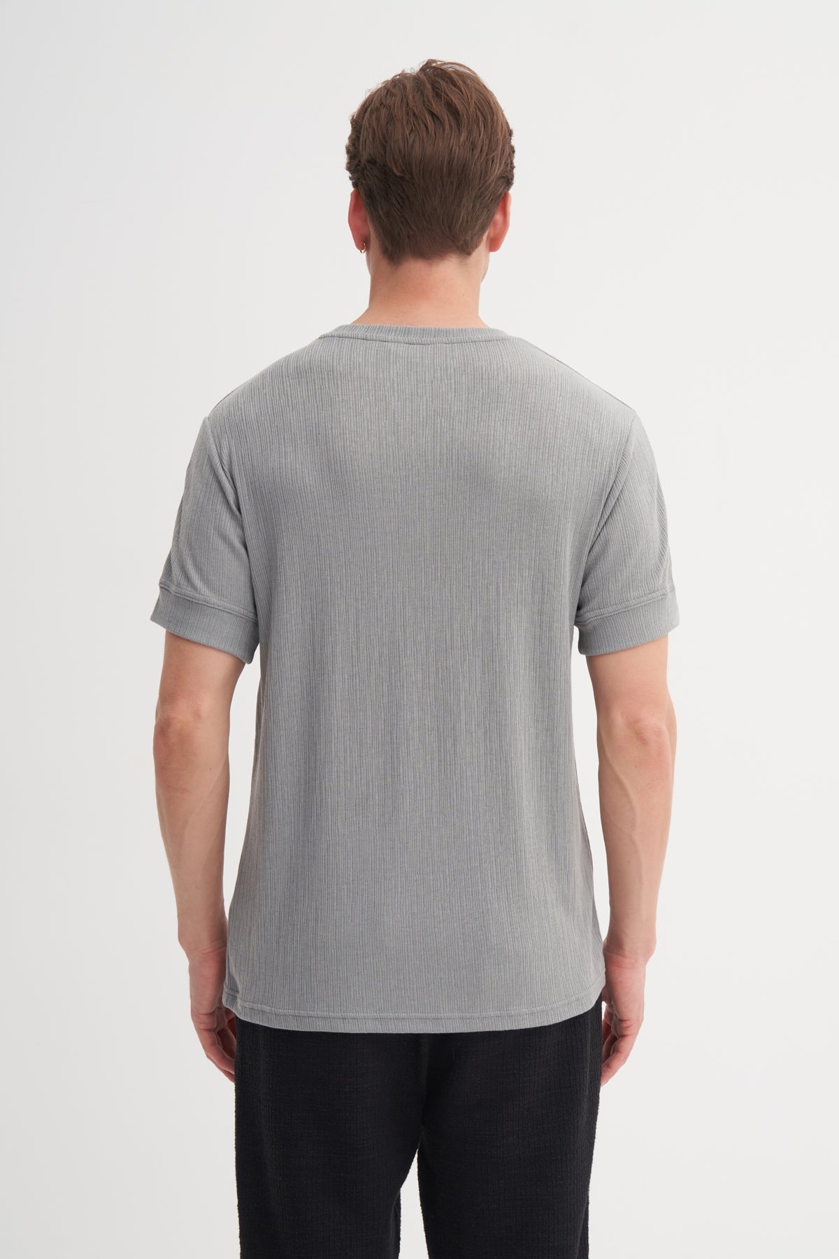Bisiklet Yaka Regular Fit Örme Desenli Tişört 4078