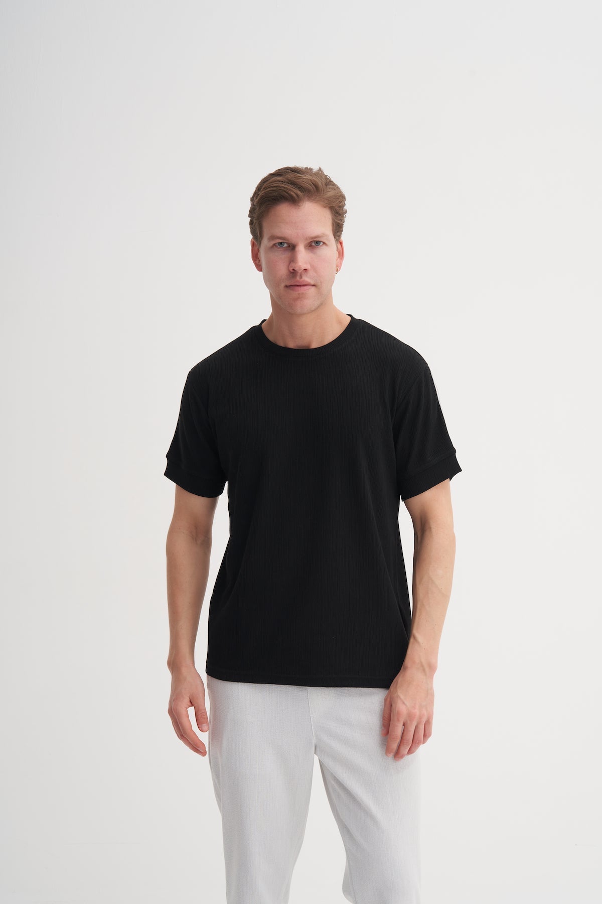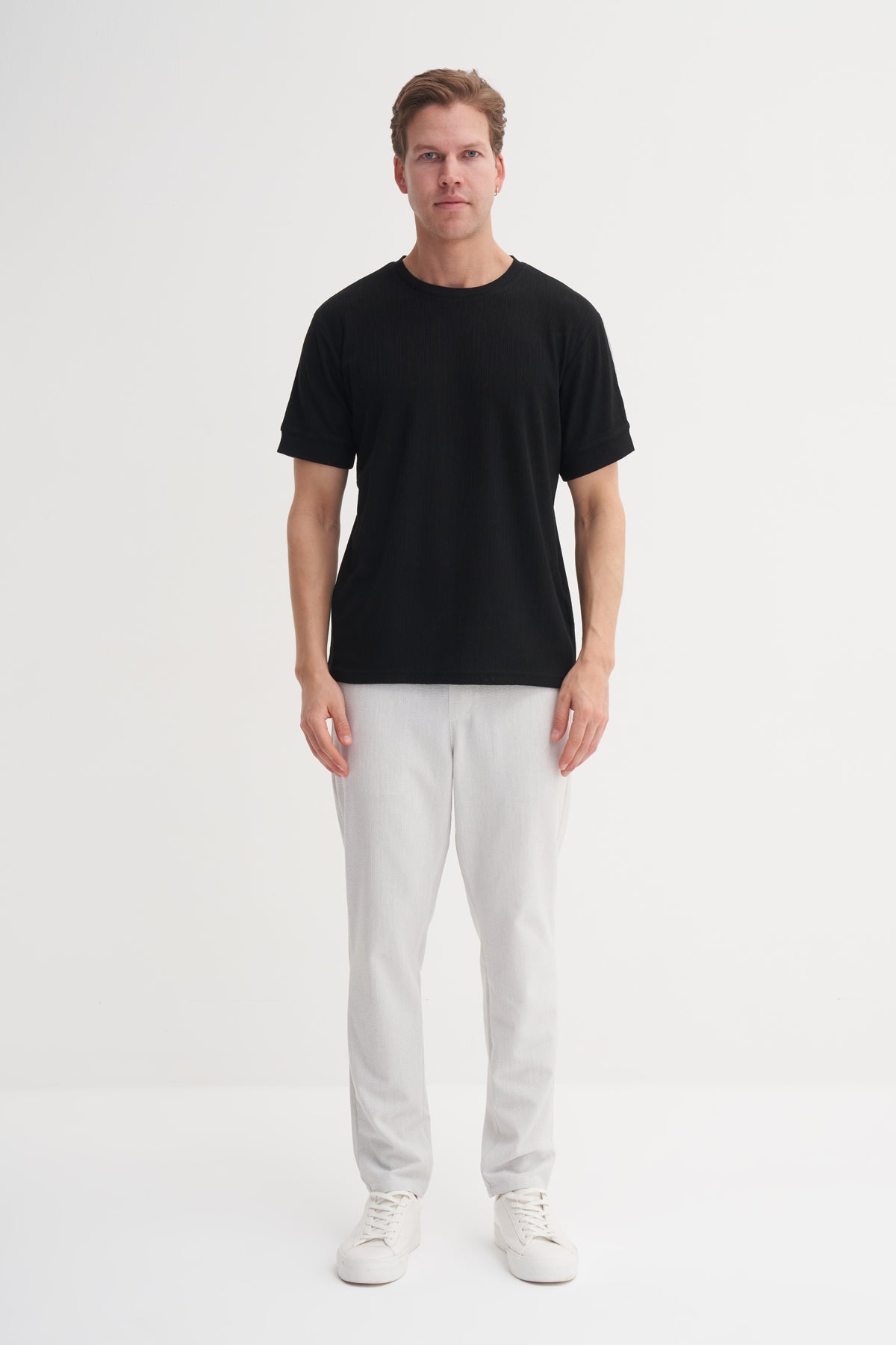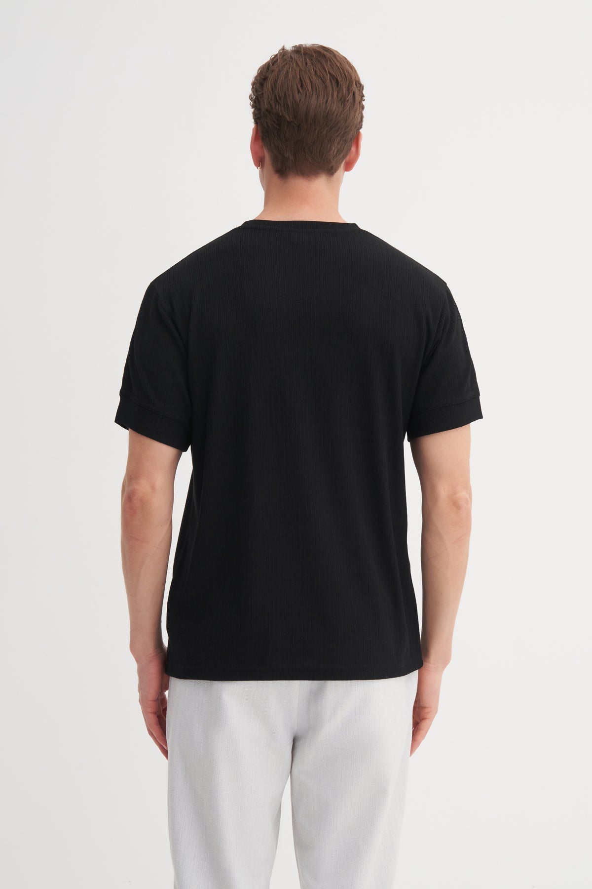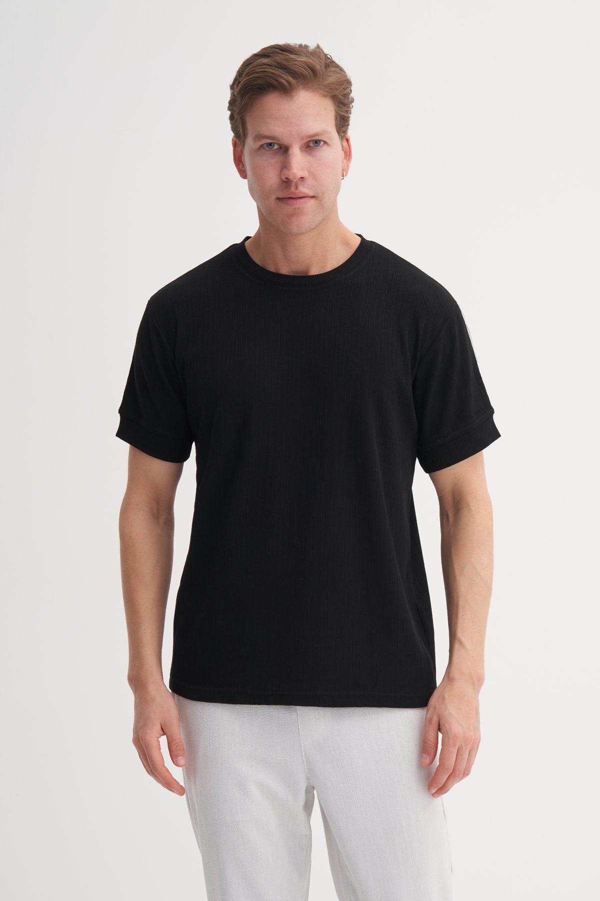 Bisiklet Yaka Regular Fit Örme Desenli Tişört 4078