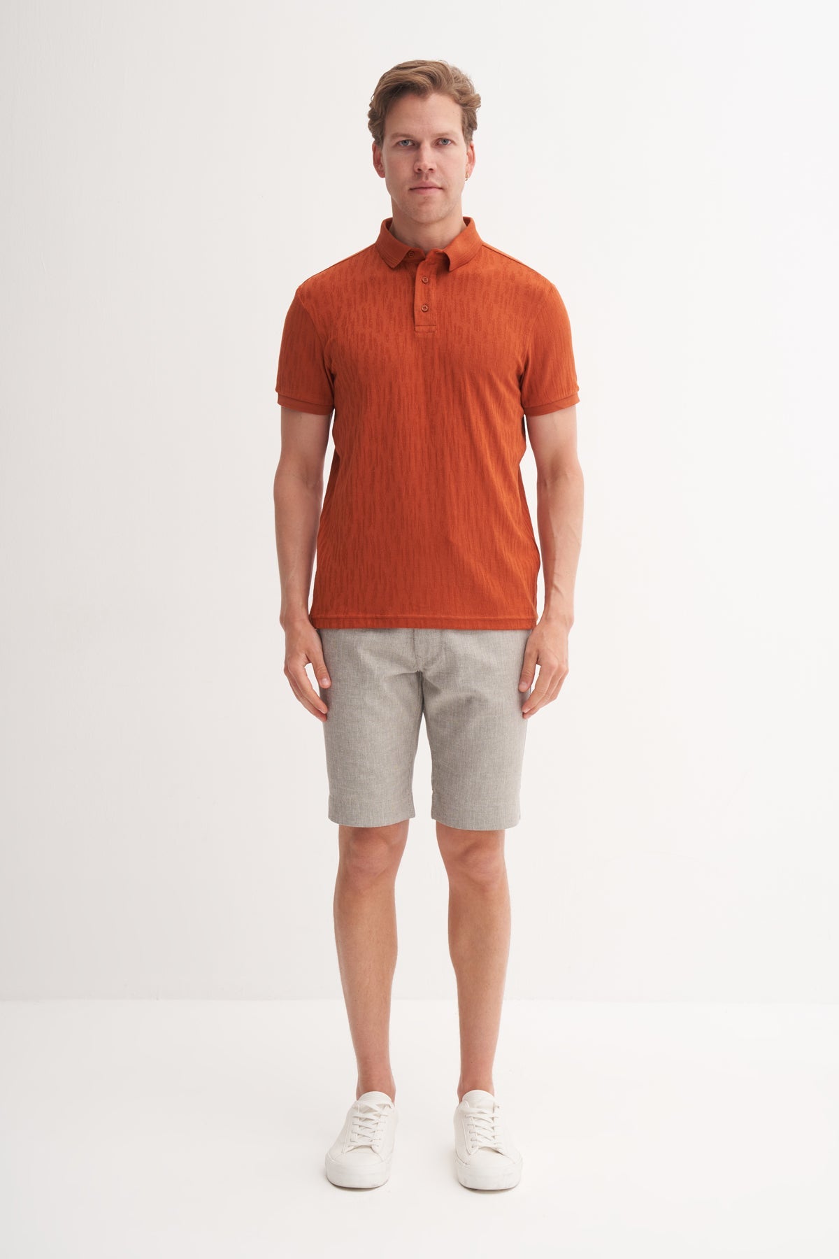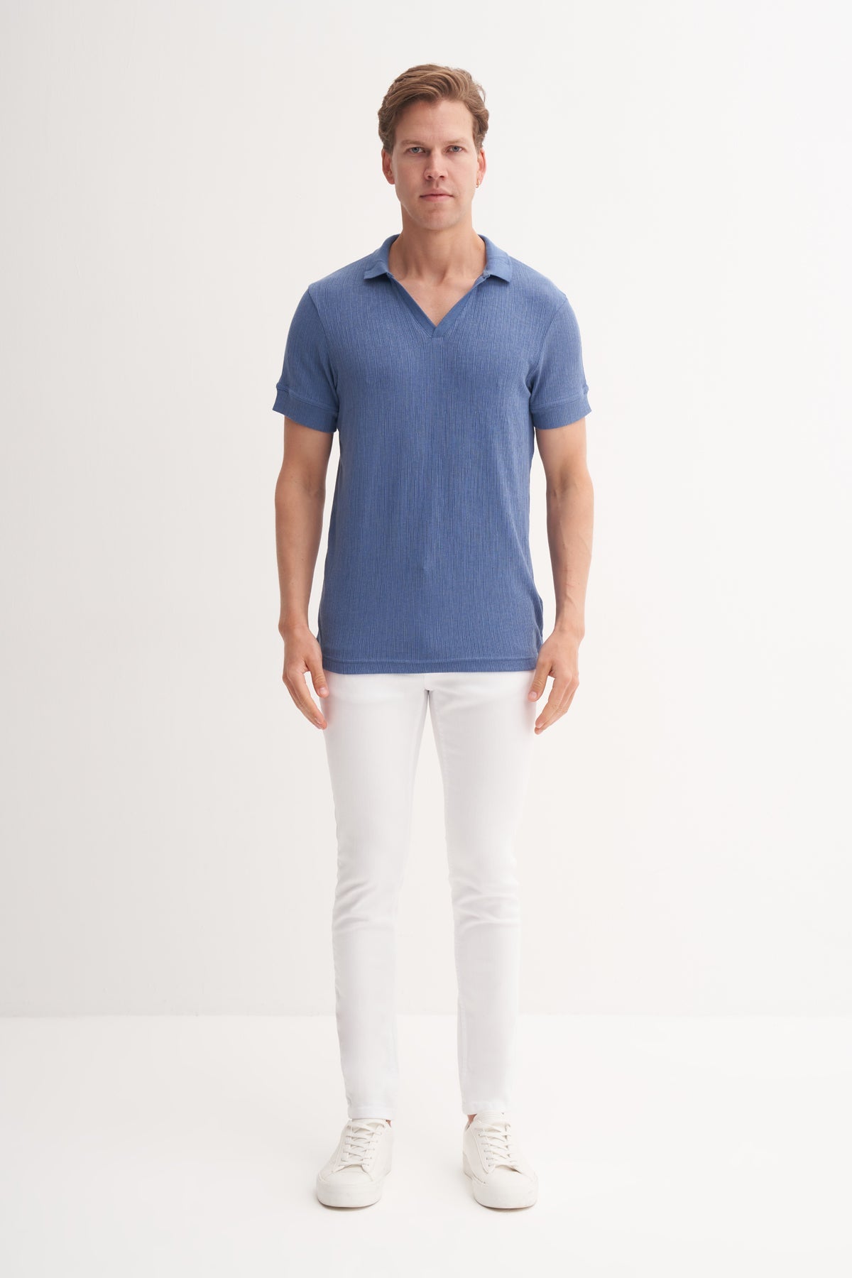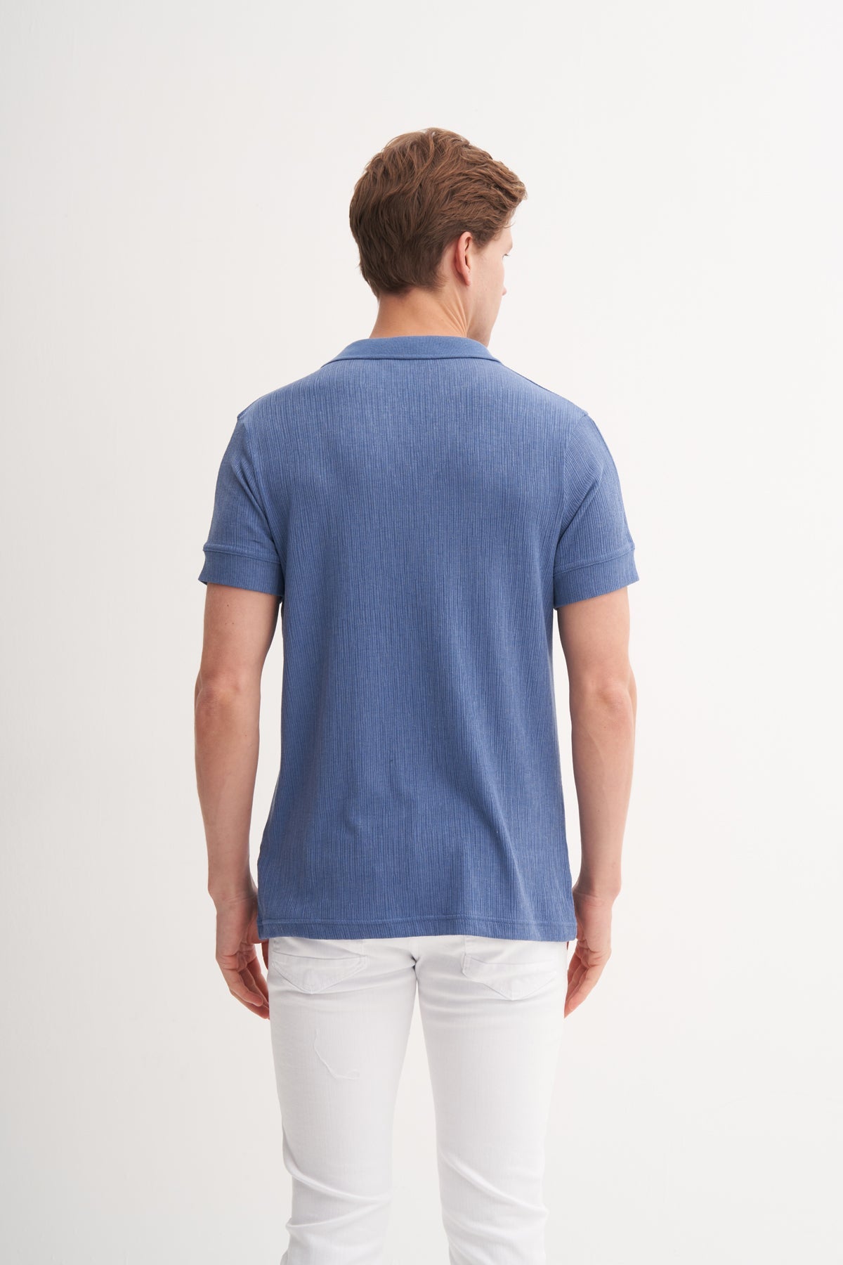 Polo Yaka Regular Fit Örme Jakarlı Tişört 4079