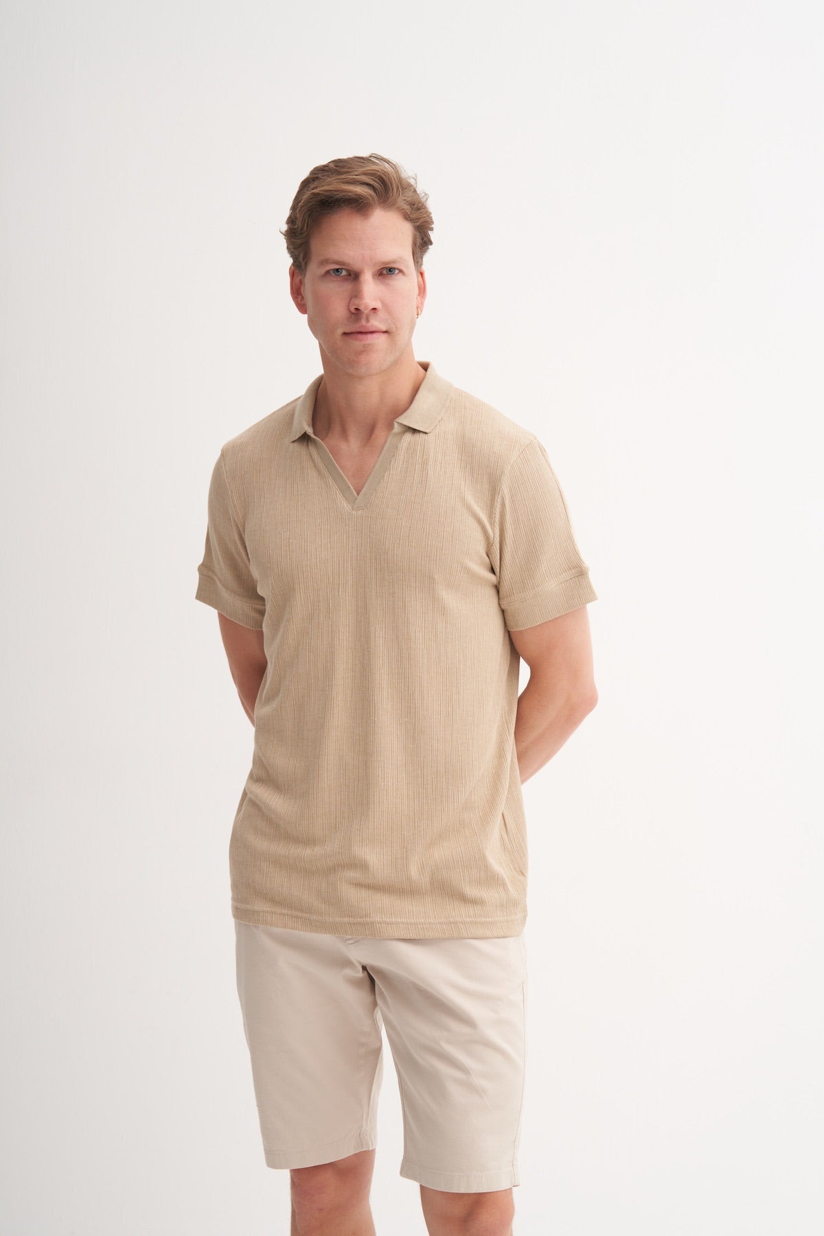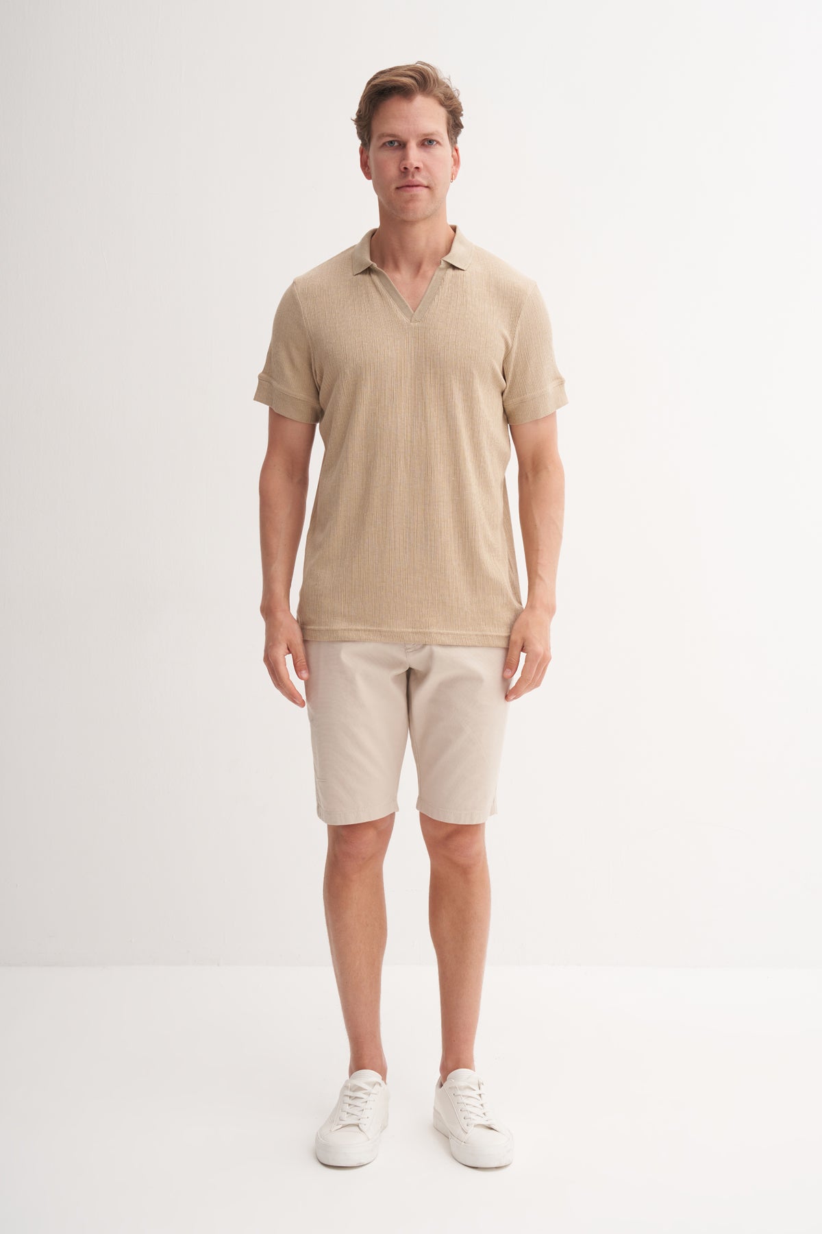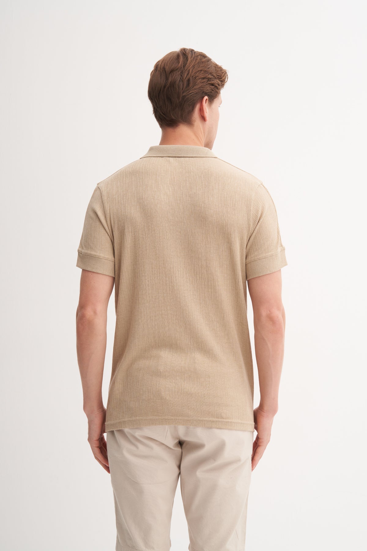 Polo Yaka Regular Fit Örme Jakarlı Tişört 4079