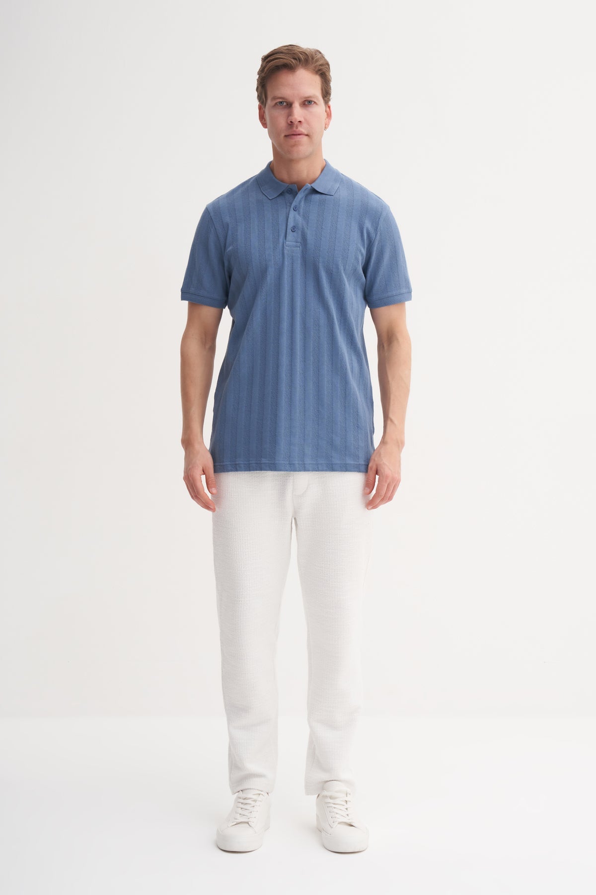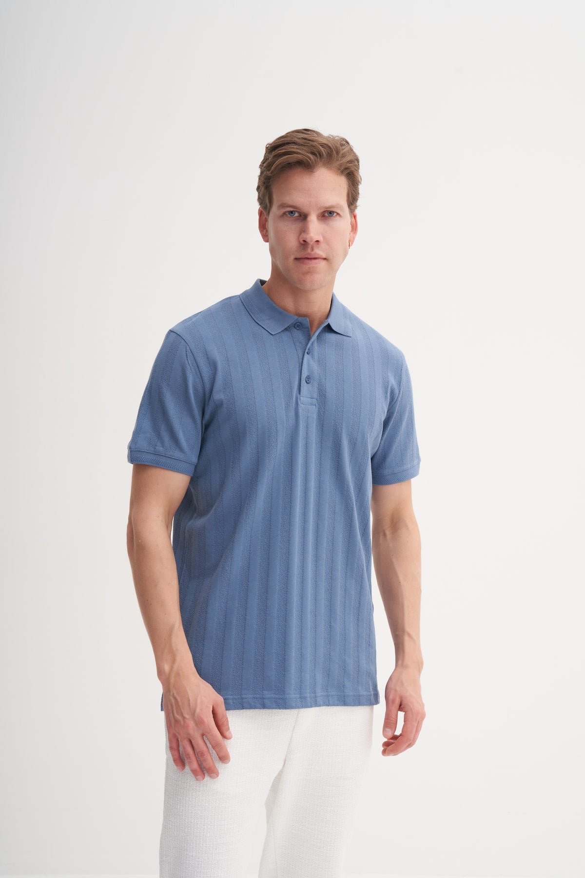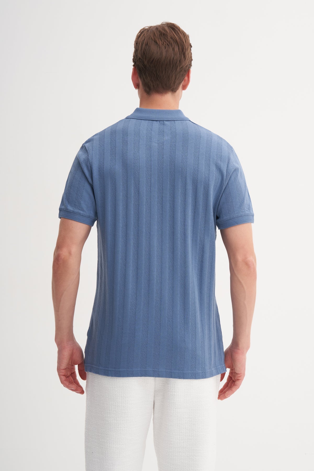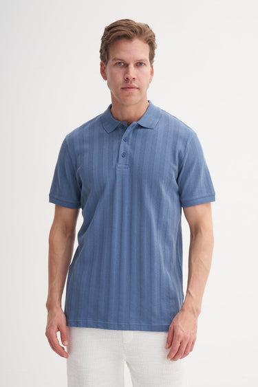 Polo Yaka Regular Fit Pamuklu Çizgi Desenli Tişört 4102