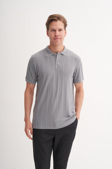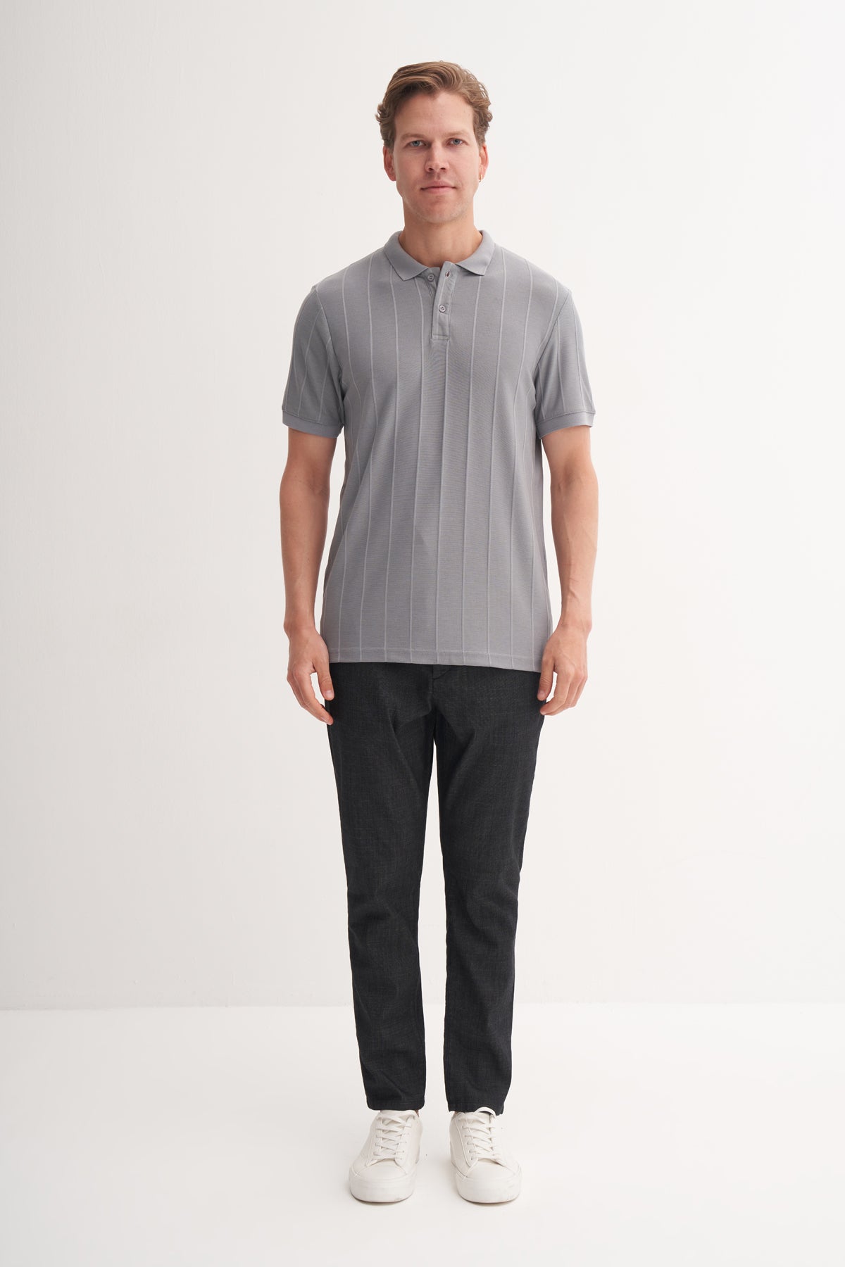 Polo Yaka Regular Fit Örme Jakarlı Tişört 4104