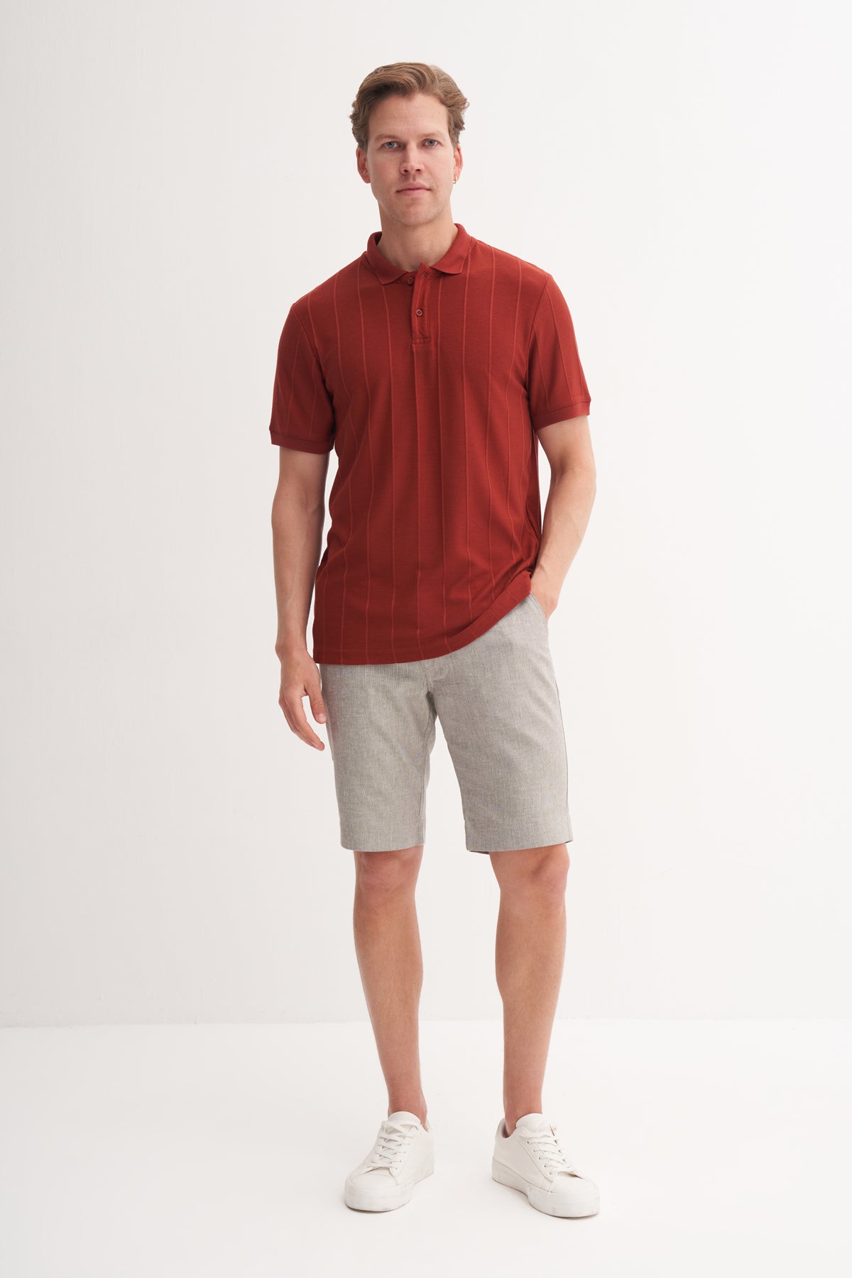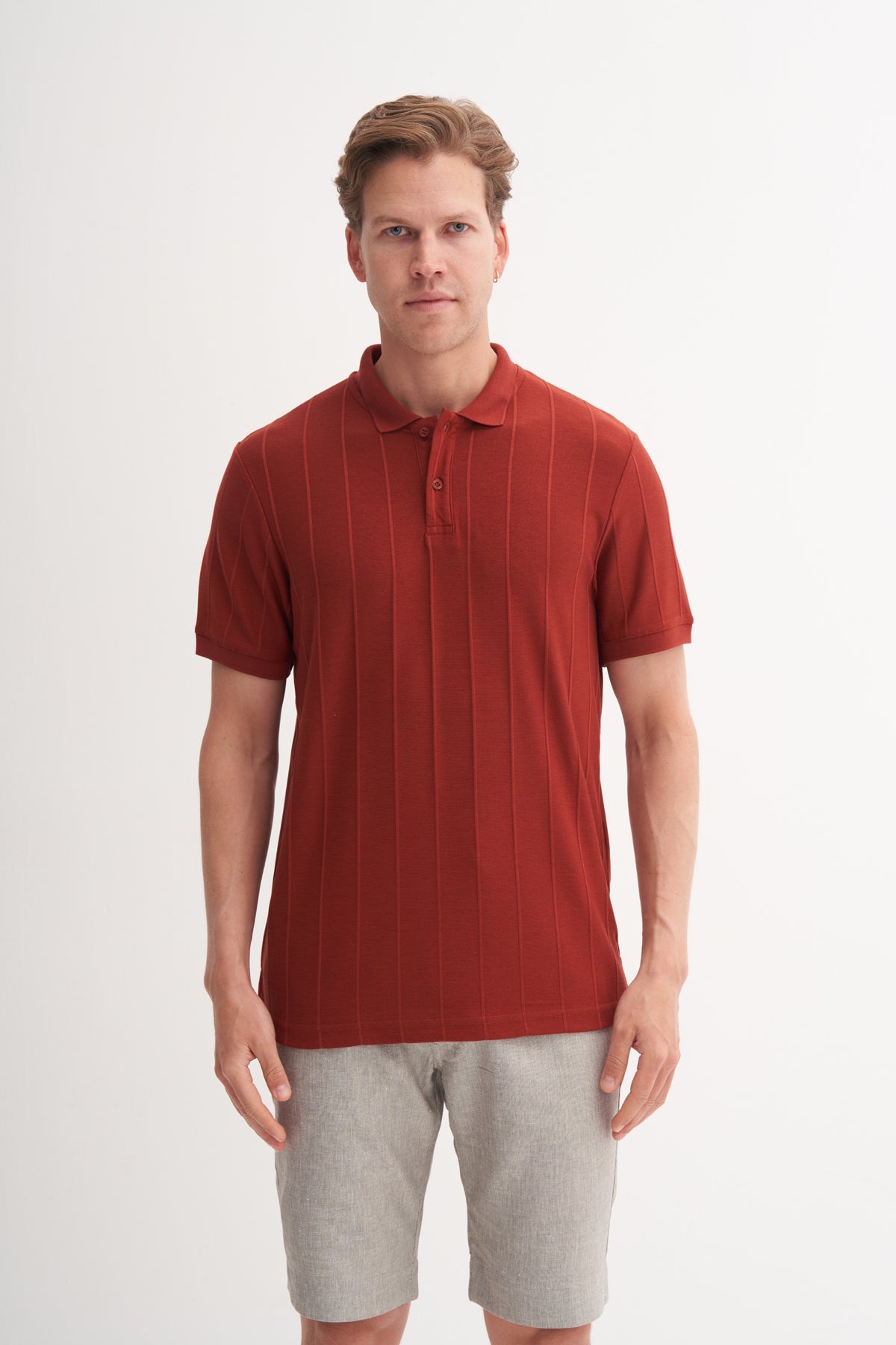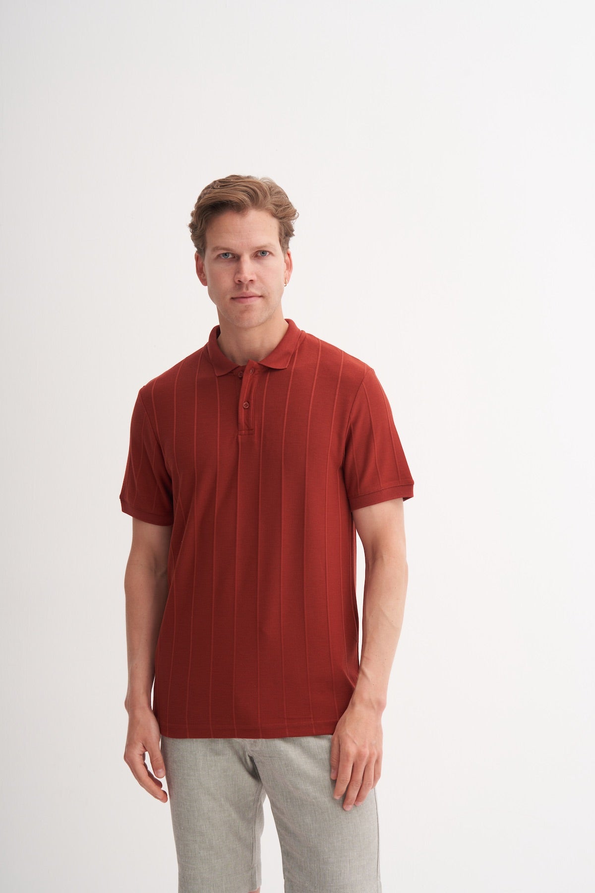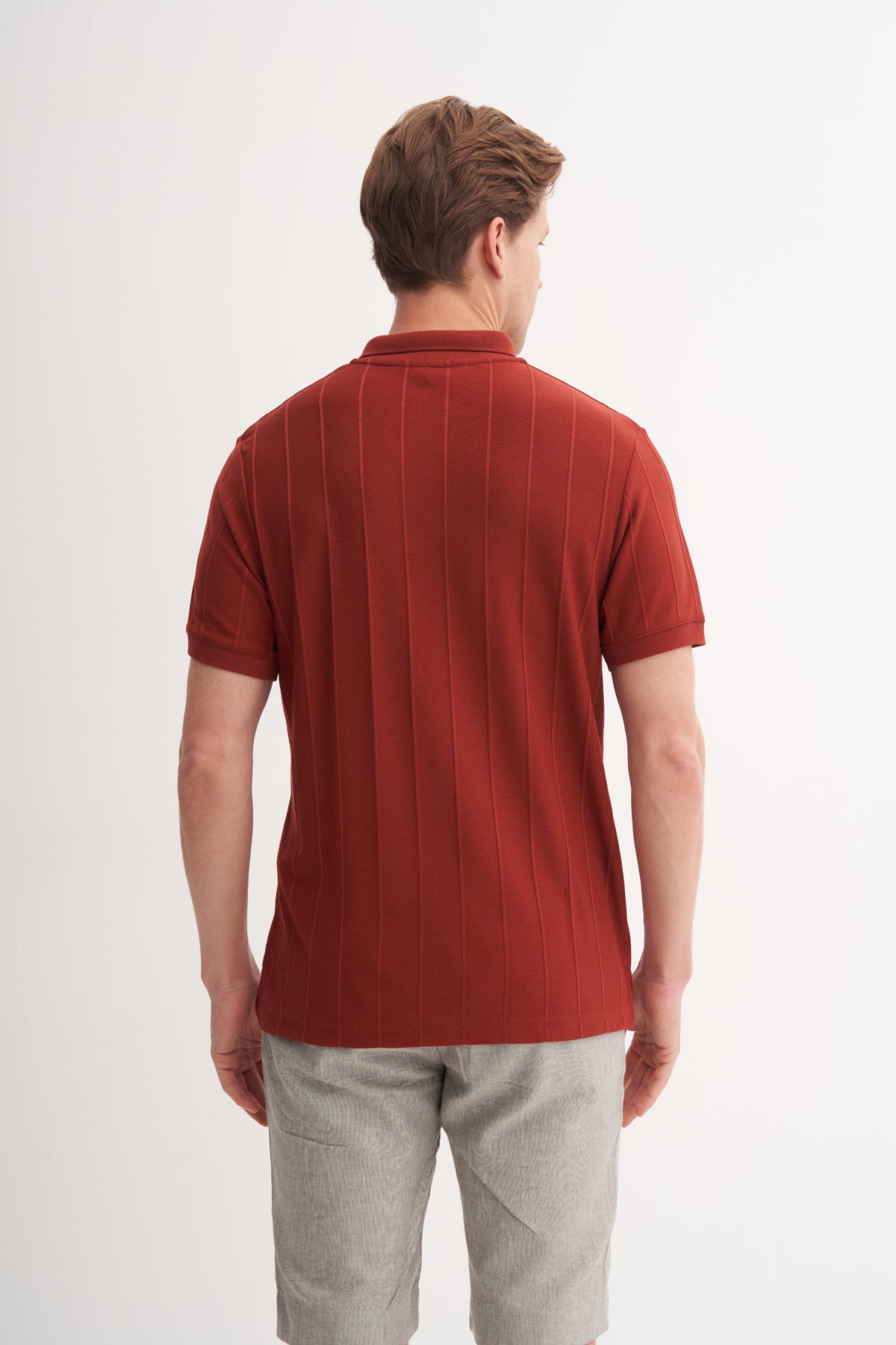 Polo Yaka Regular Fit Örme Jakarlı Tişört 4104