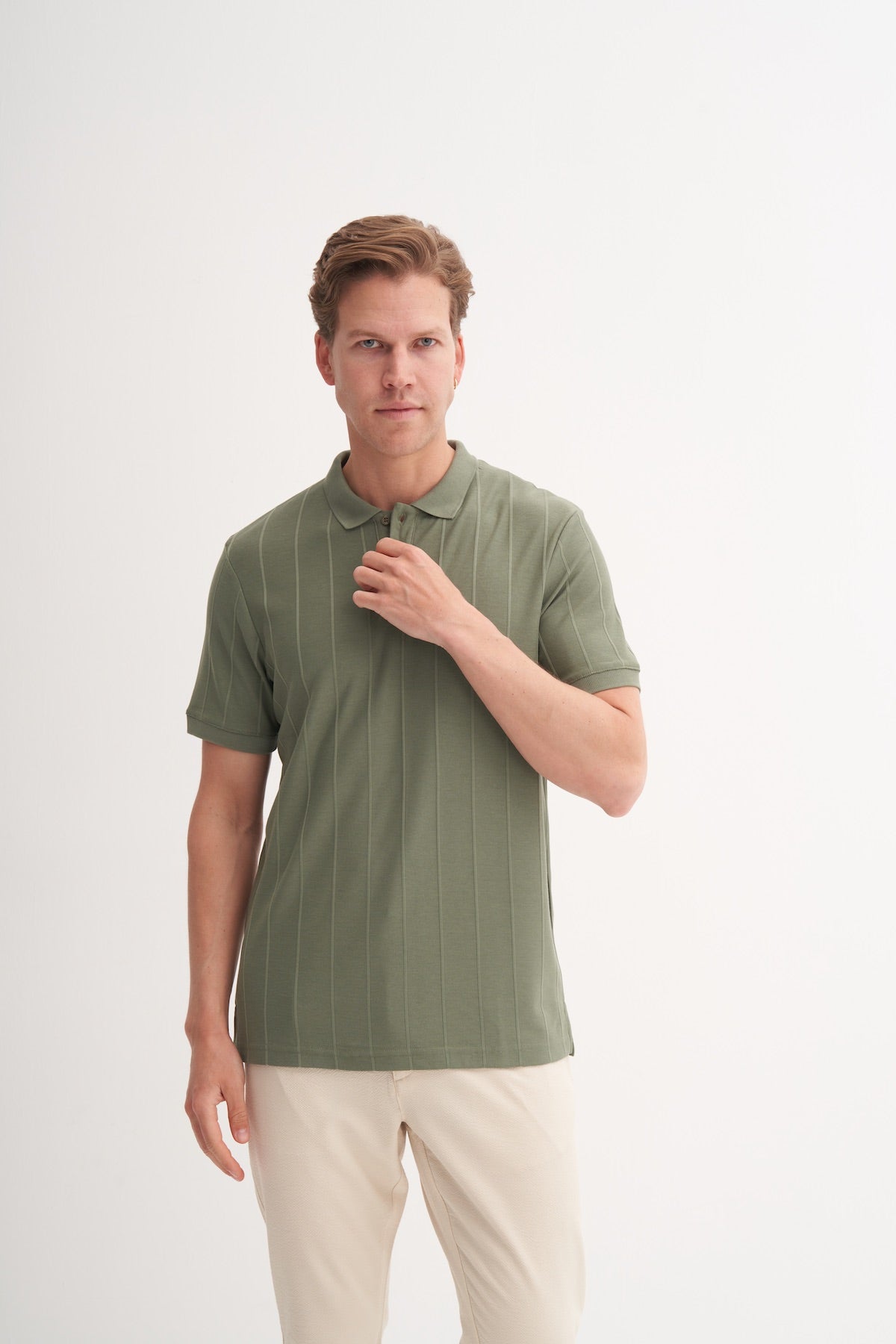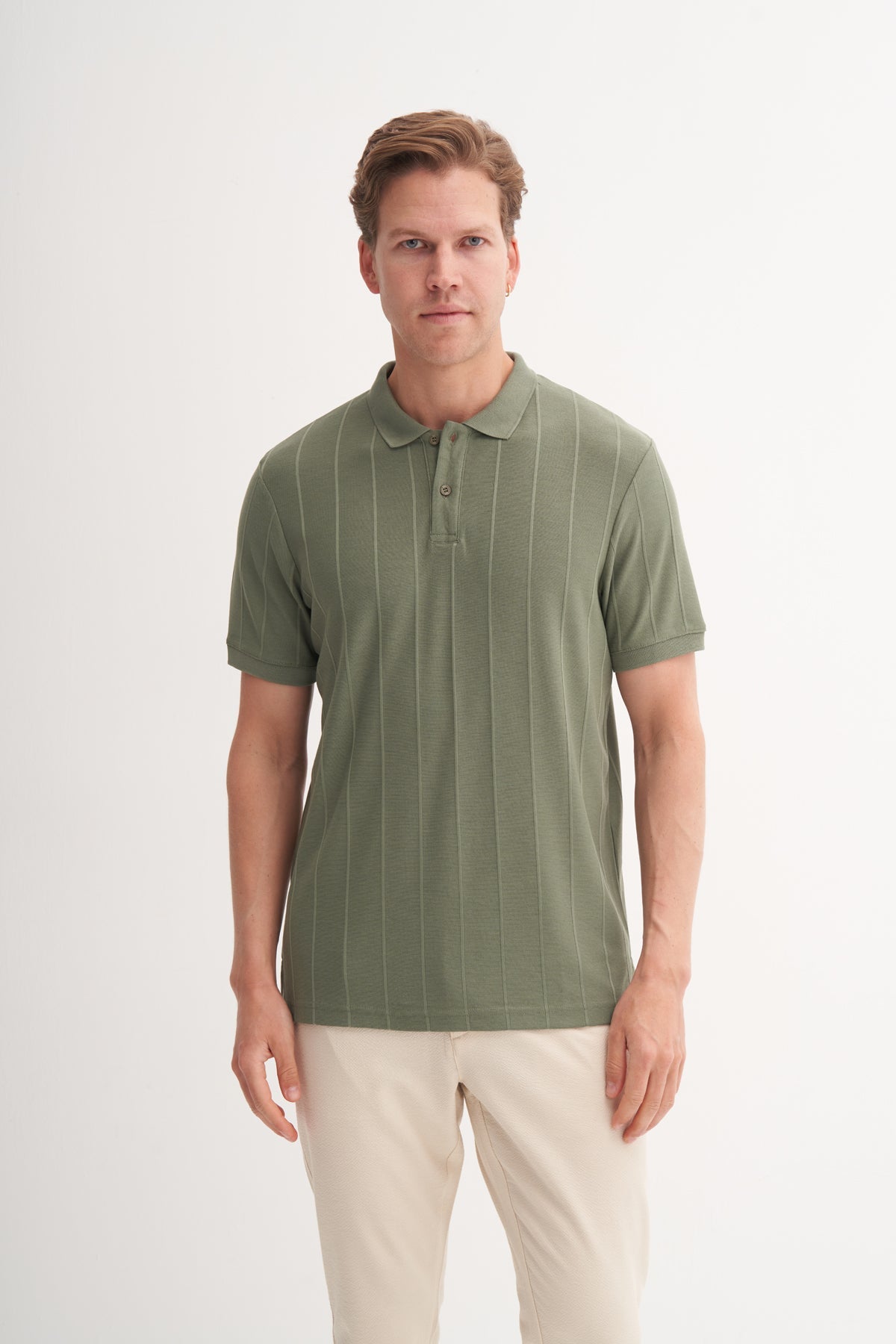 Polo Yaka Regular Fit Örme Jakarlı Tişört 4104