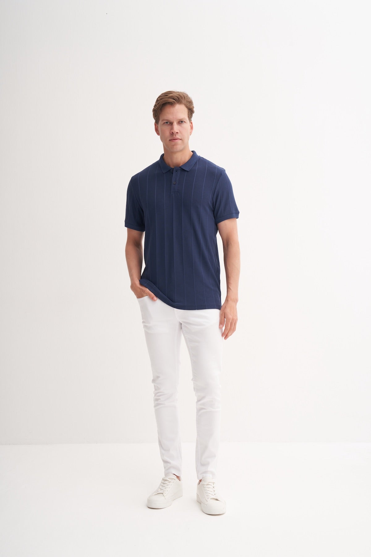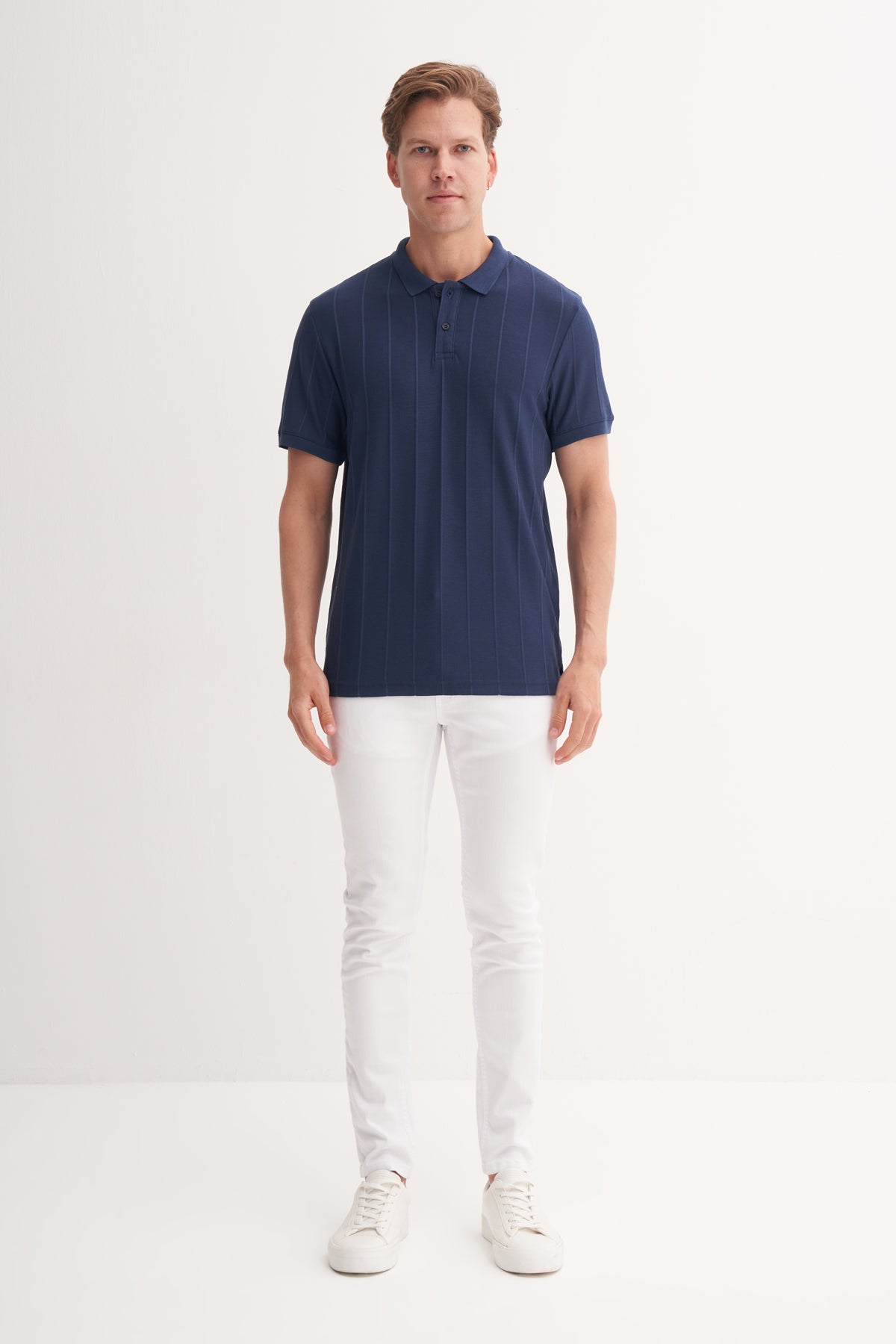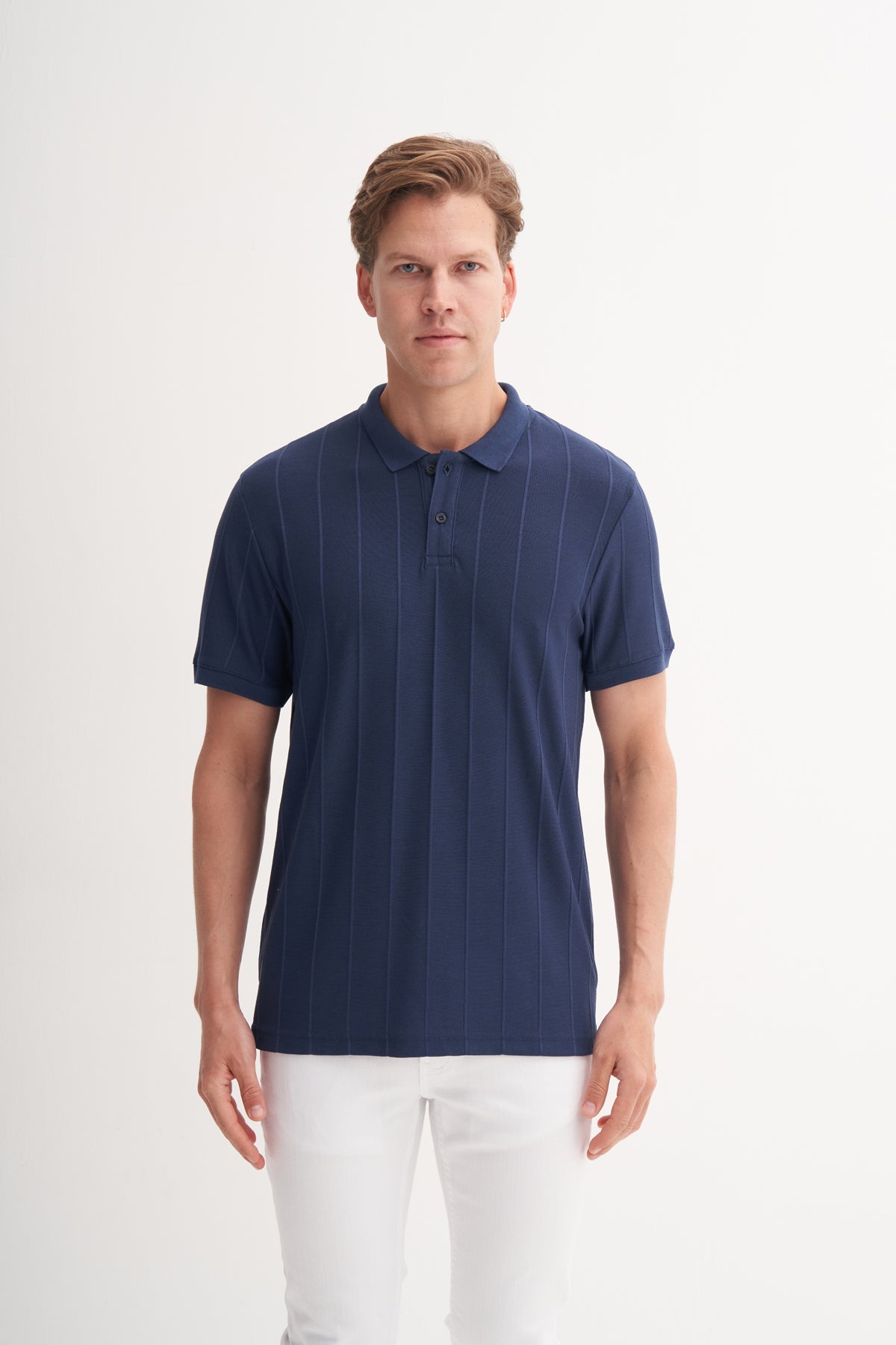 Polo Yaka Regular Fit Örme Jakarlı Tişört 4104
