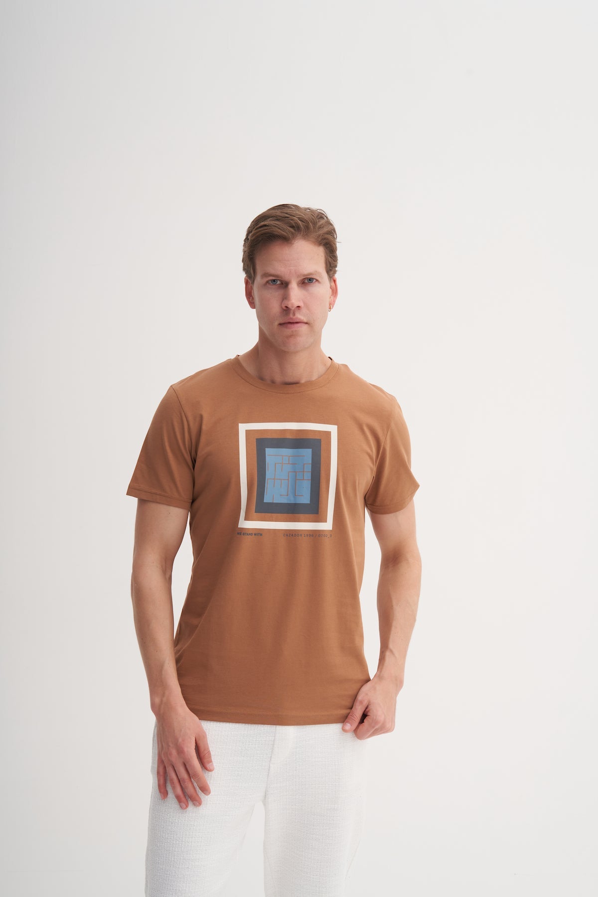 Bisiklet Yaka Regular Fit Baskılı Tişört 4117 - Cazador