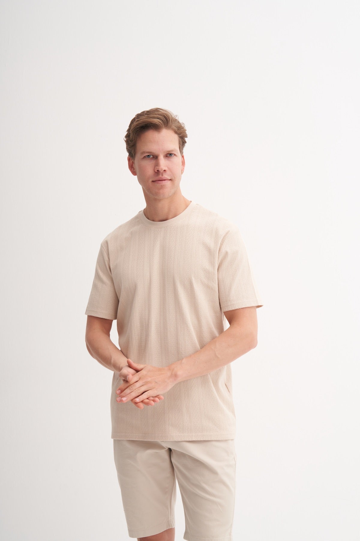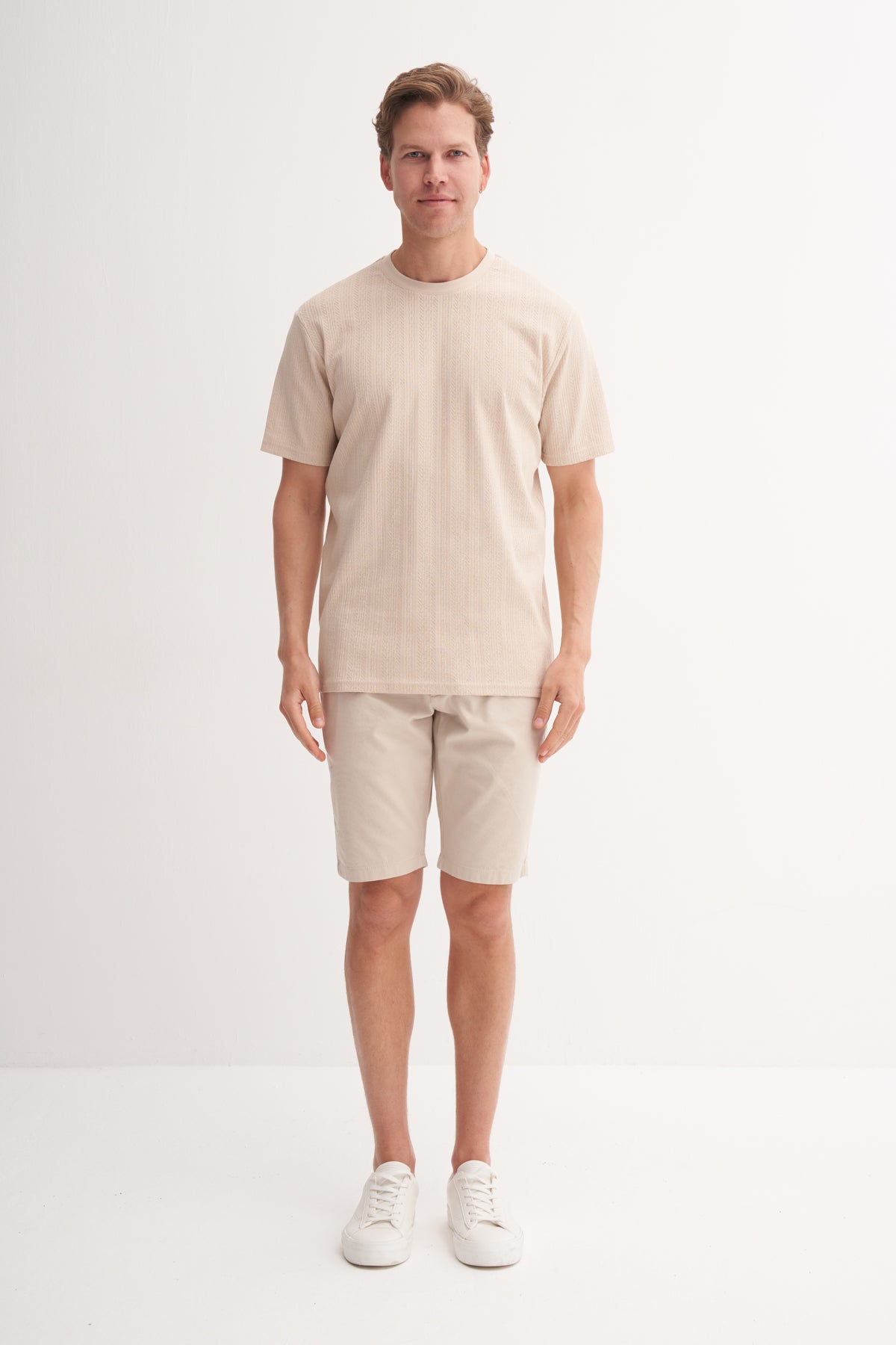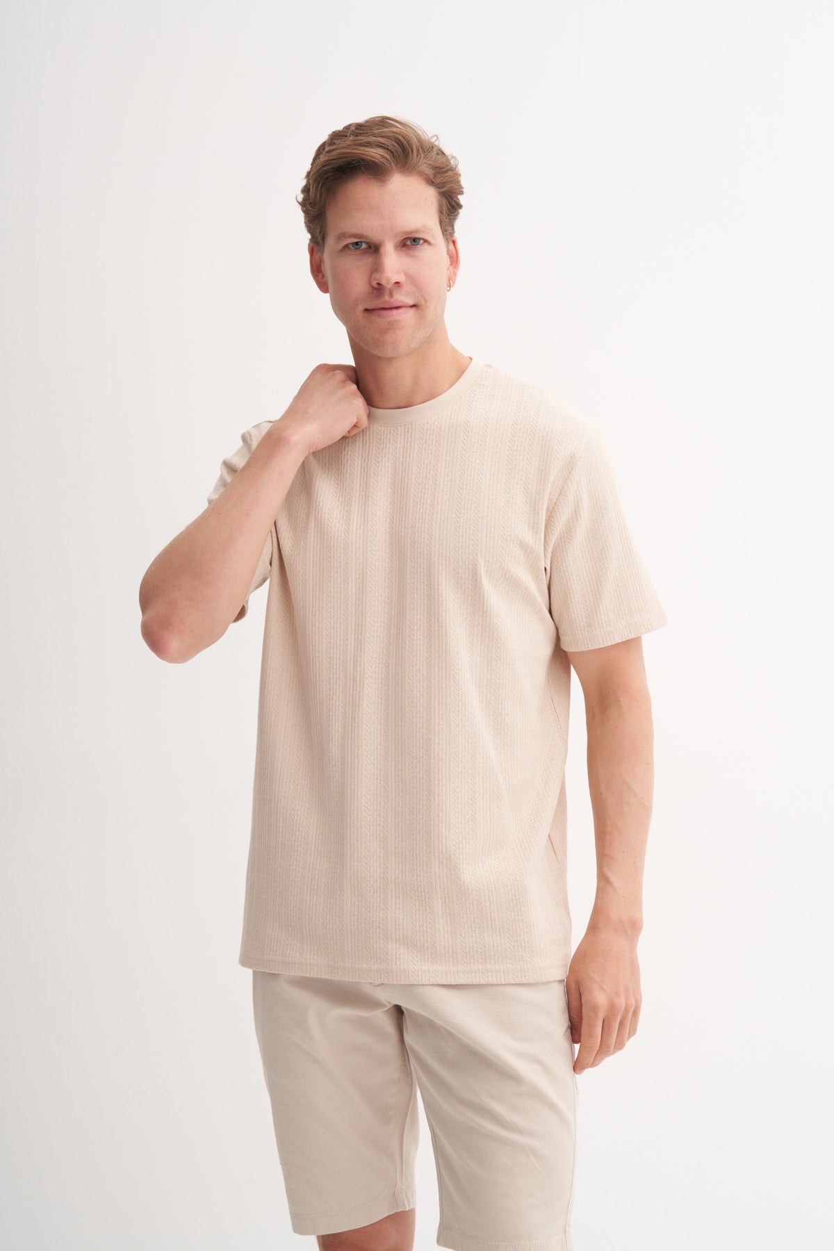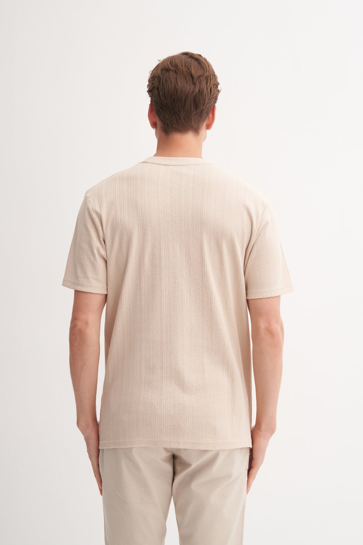 Regular Fit Pamuklu Bisiklet Yaka Dokulu tişört 4121
