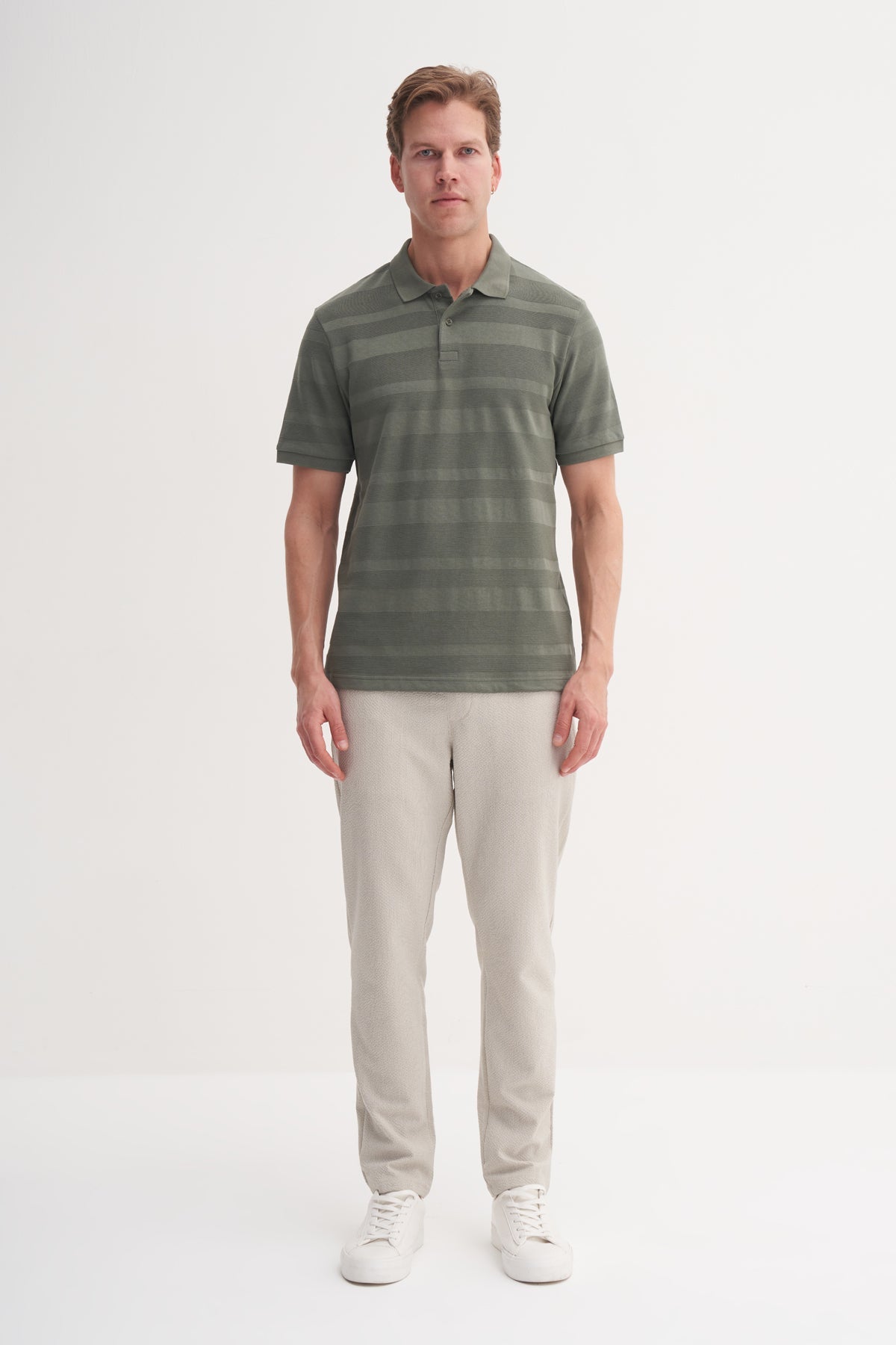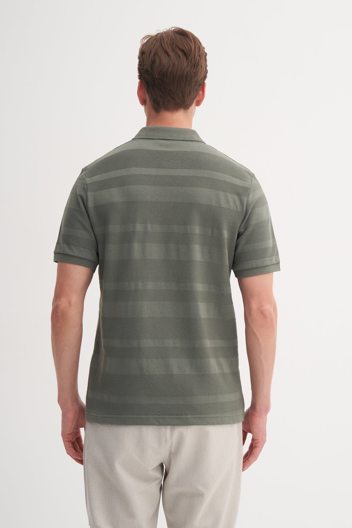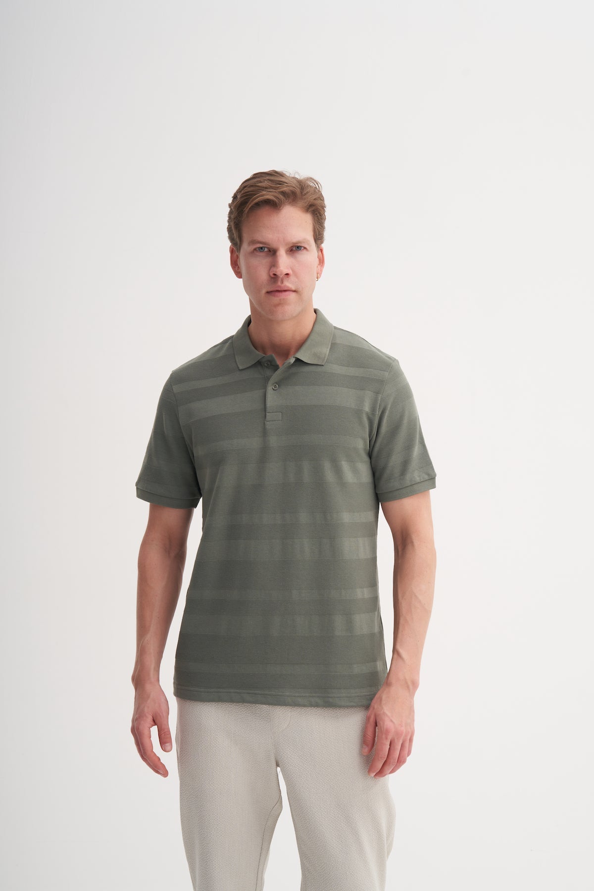 Polo Yaka Regular Fit Örme Çizgi Dokulu Tişört 4124