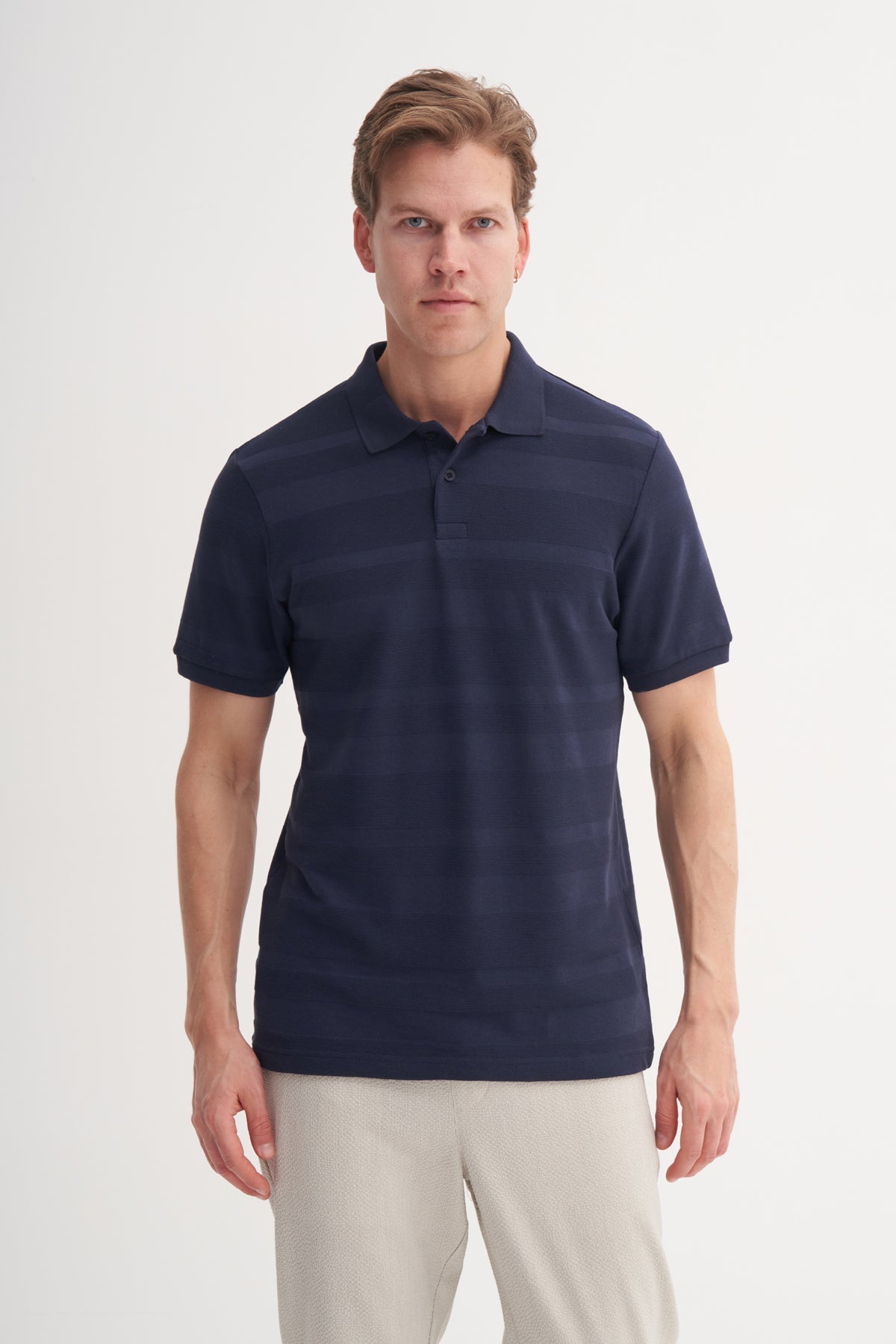 Polo Yaka Regular Fit Örme Çizgi Dokulu Tişört 4124
