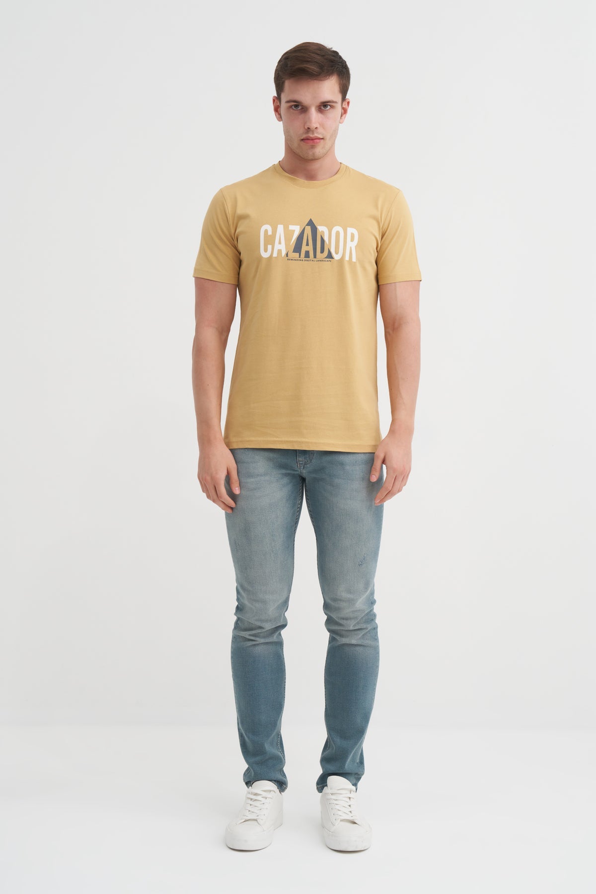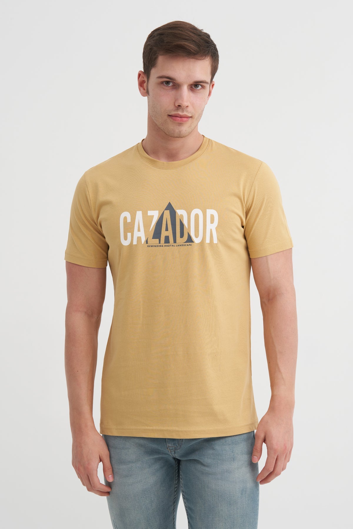 Slim Fit Bisiklet Yaka Pamuklu Baskılı Tişört 4155 - Cazador